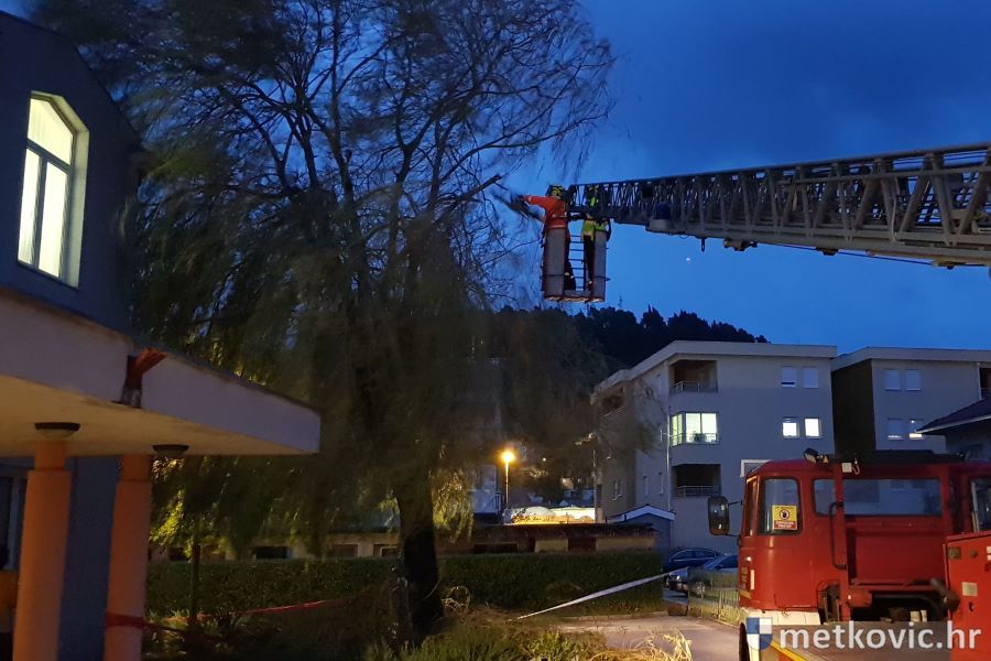 U popodnevnim satima vatrogasci su zatvorili prilaz Dječjem vrtiću kako bi ispilili veliku tužnu vrbu koja se opasno naginjala pod udarima vjetra. Jutros je taj prilaz otvoren za promet.