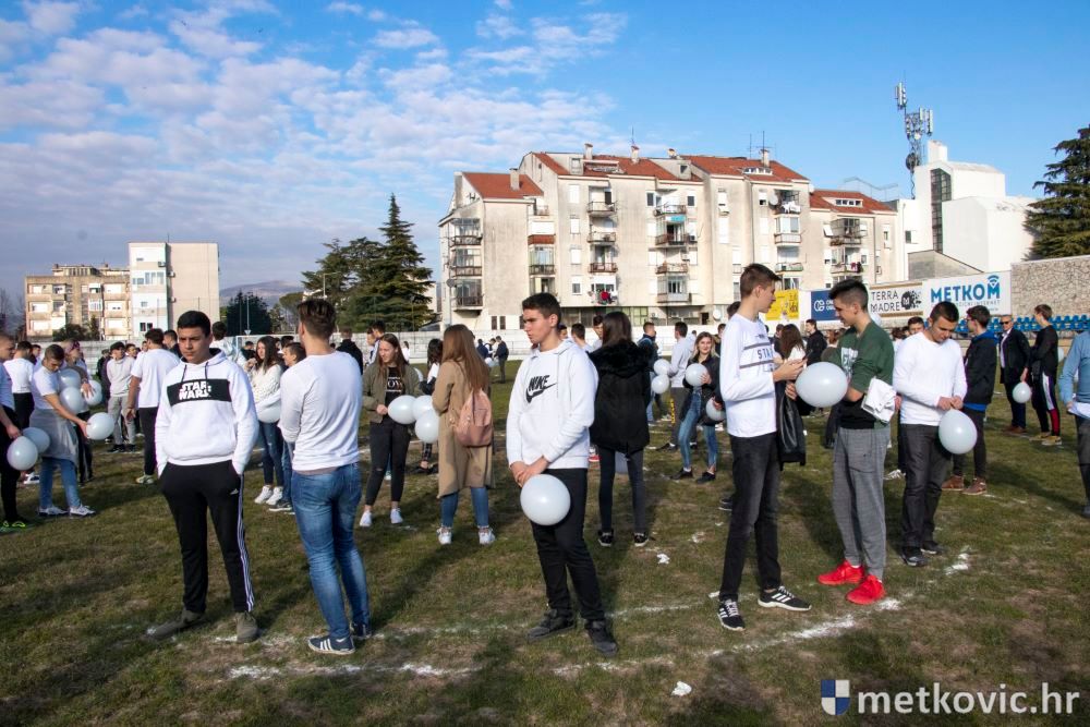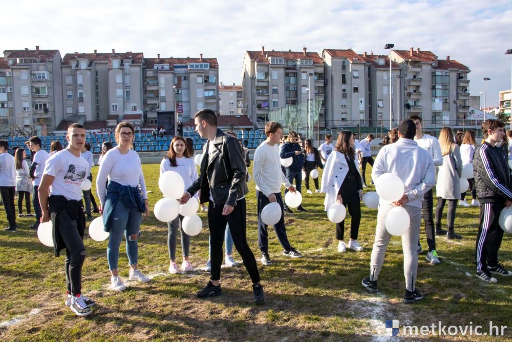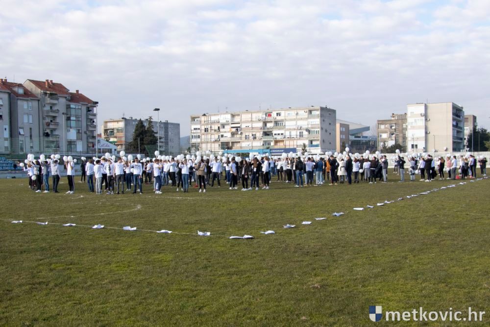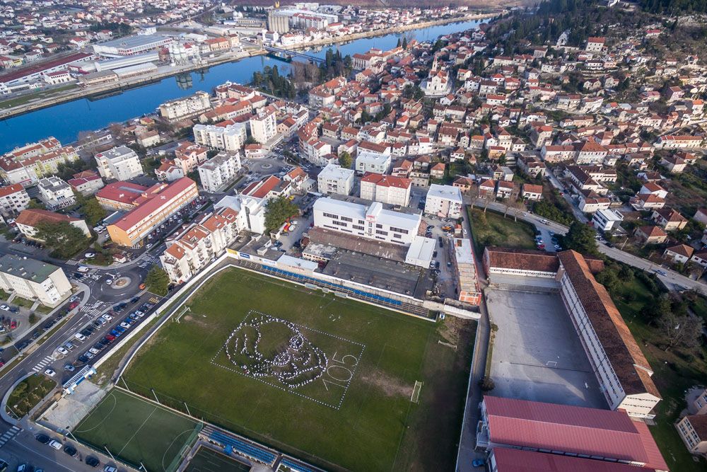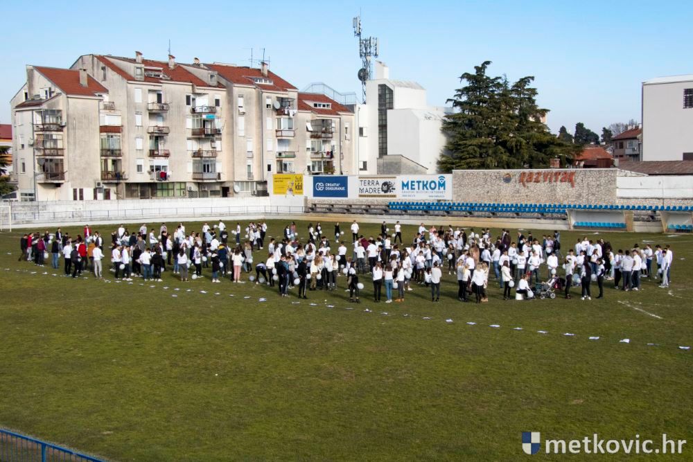 14.1.2020. - Učenici i nastavnici Srednje škole Metković jučer su na Igralištu 'Iza Vage' tijelima oblikovali veliki lik oca Ante Gabrića te tako načinili predložak za 'milenijsku' fotografiju, koju je snimio Marin Veraja iz Fotostudija 'Veraja'.