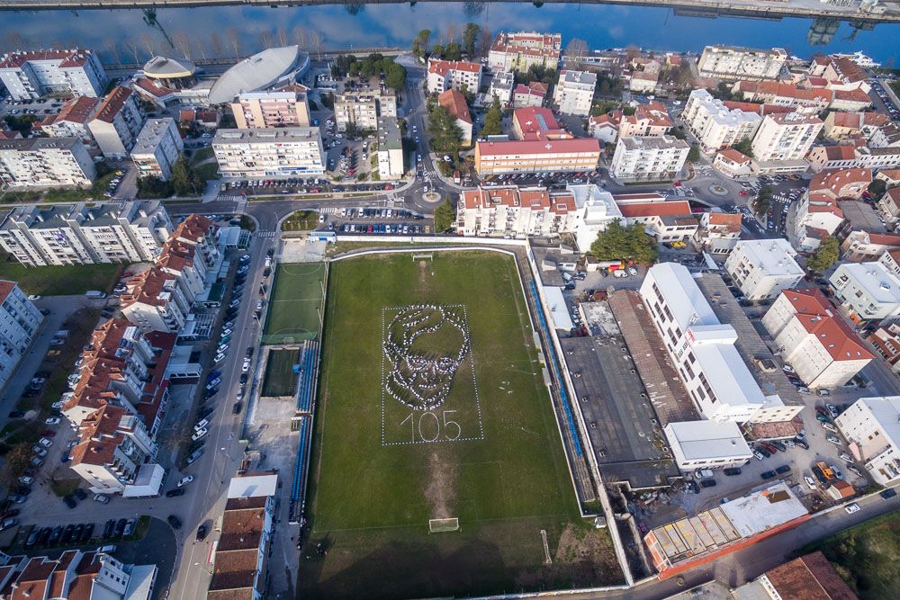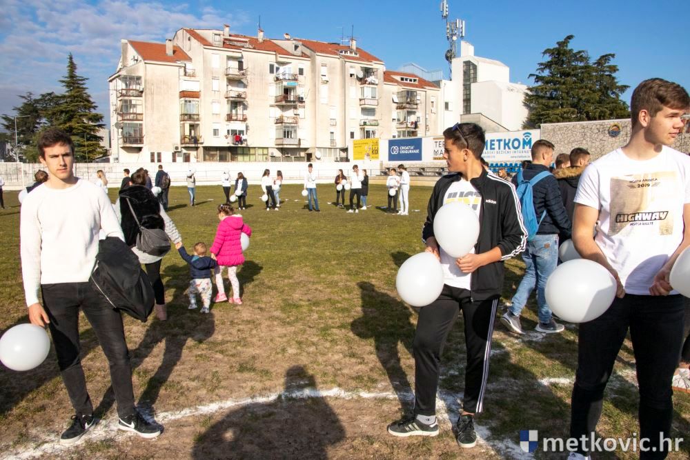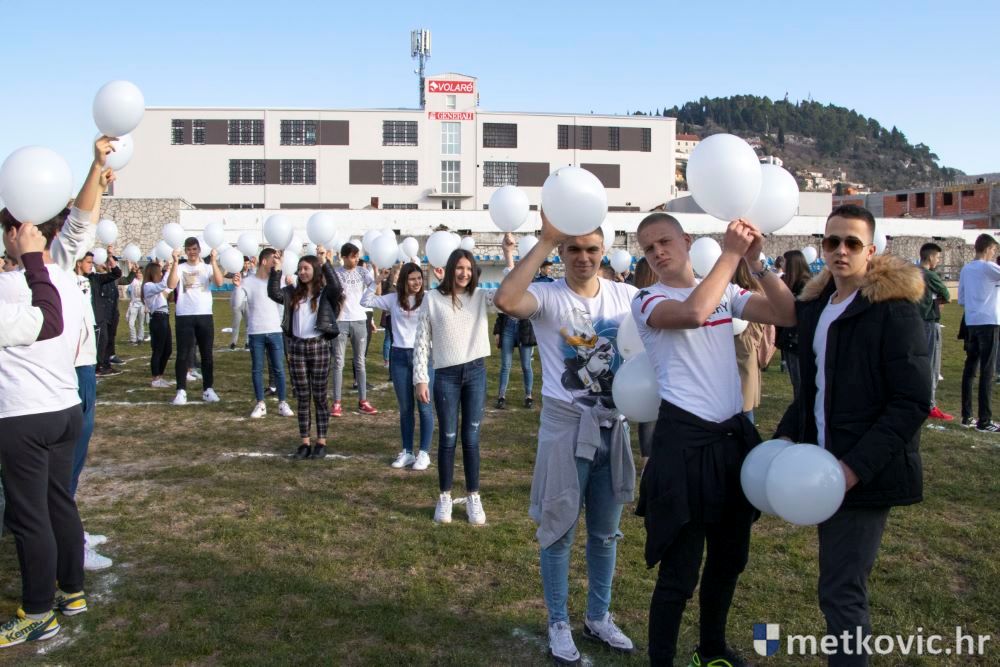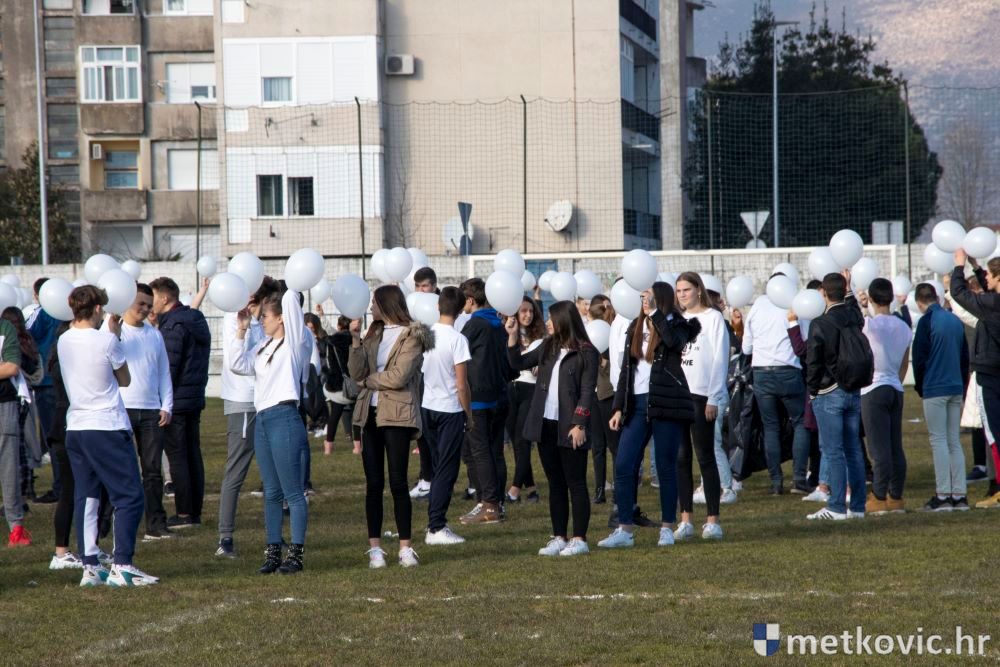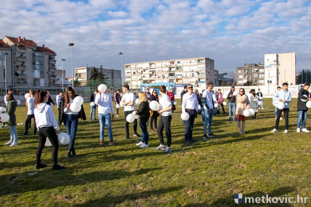 14.1.2020. - Učenici i nastavnici Srednje škole Metković jučer su na Igralištu 'Iza Vage' tijelima oblikovali veliki lik oca Ante Gabrića te tako načinili predložak za 'milenijsku' fotografiju, koju je snimio Marin Veraja iz Fotostudija 'Veraja'.