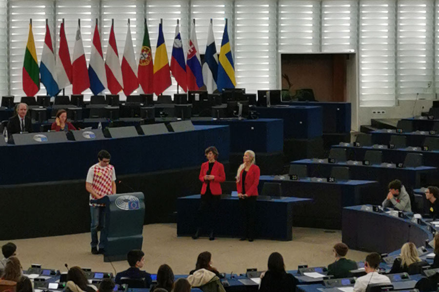17.2.2020. - Učenici Gimnazije Metković koji sudjeluju u programu "Škole ambasadori Europskog parlamenta" u pratnji profesorica Branke Vladimir i Ane Bebić sudjelovali su u nagradnom putovanju na događaj Euroscola u Strasbourgu, koji su osvojili svojim radom na promicanju EU u protekloj školskoj godini.