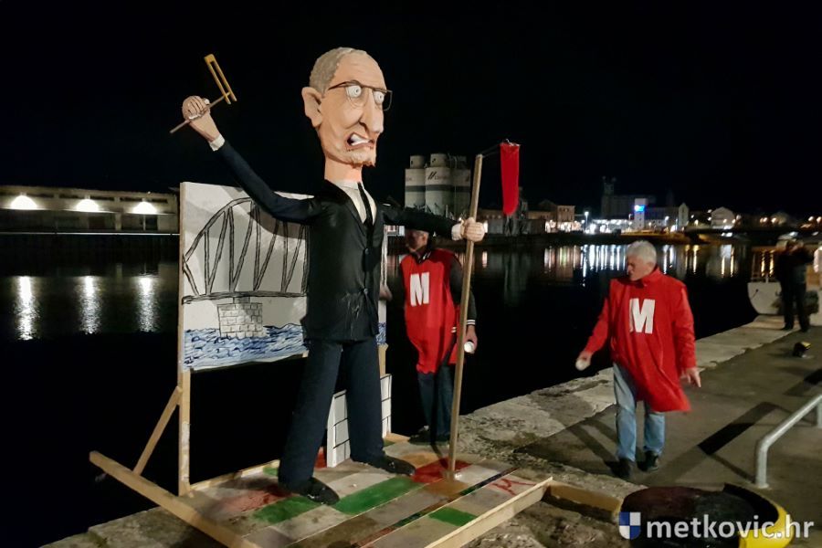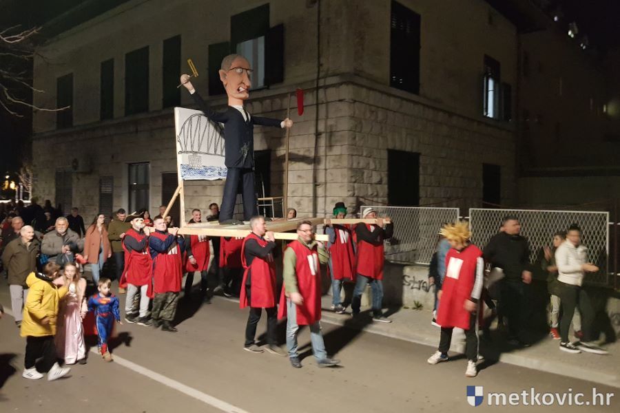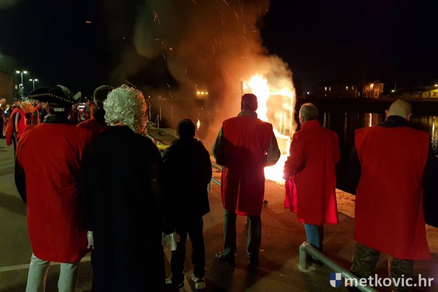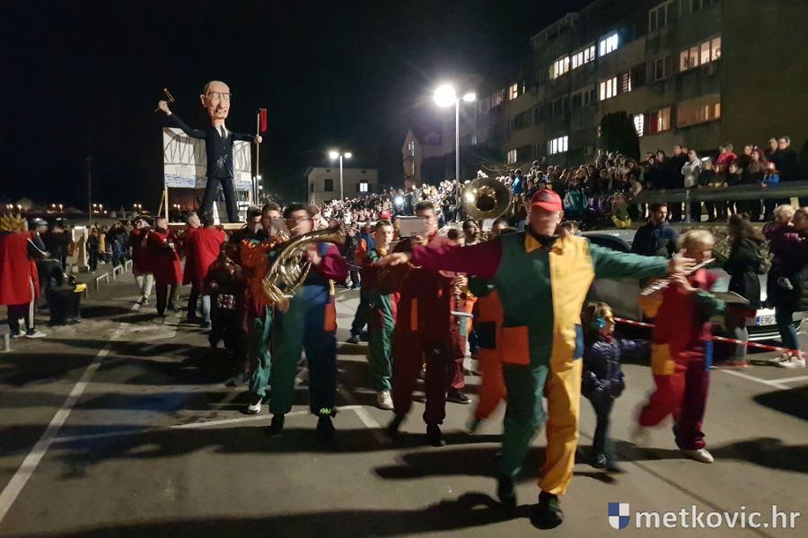 26.2.2020. - Ni koronavirus nije spriječio mnoge Metkovce da sinoć dođu na Trg kralja Tomislava čuti za što je sve kriv Marko Krnjeval, saslušati njegovu oporuku i ispratiti na njegovu posljednjem putovanju do Velike rive uz posmrtni marš Gradske glazbe.