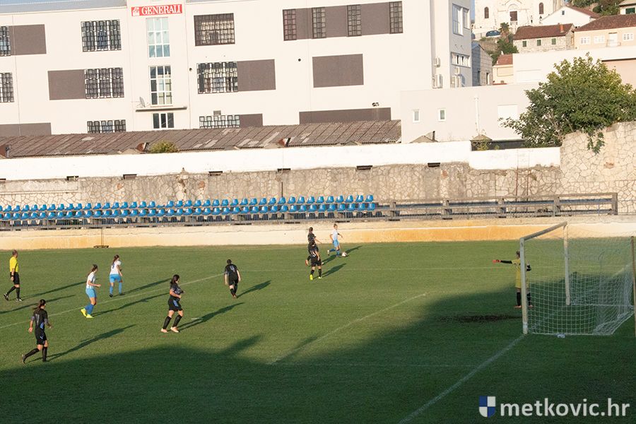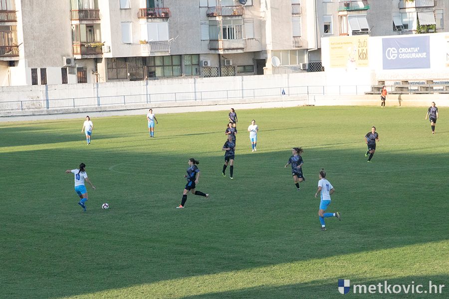 Metkovke su bile dominantne na terenu tijekom cijele utakmice, a na odmor su otišle s prednošću od četiri gola. Dva pogotka je postigla Lucija Borovac, a po jedan Marija Herceg i Nina Mijoč.