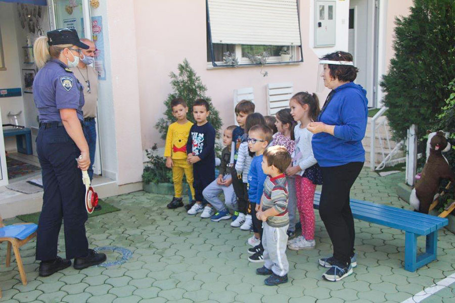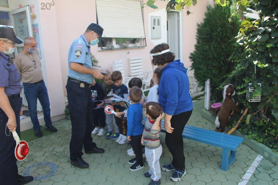 1.10.2020. - U sklopu obilježavanja Dana policije policijski službenici Policijske postaje Metković su posjetili Dječji vrtić Leut u Metkoviću, gdje su, poštujući epidemiološke mjere, djeci predstavili rad policije.