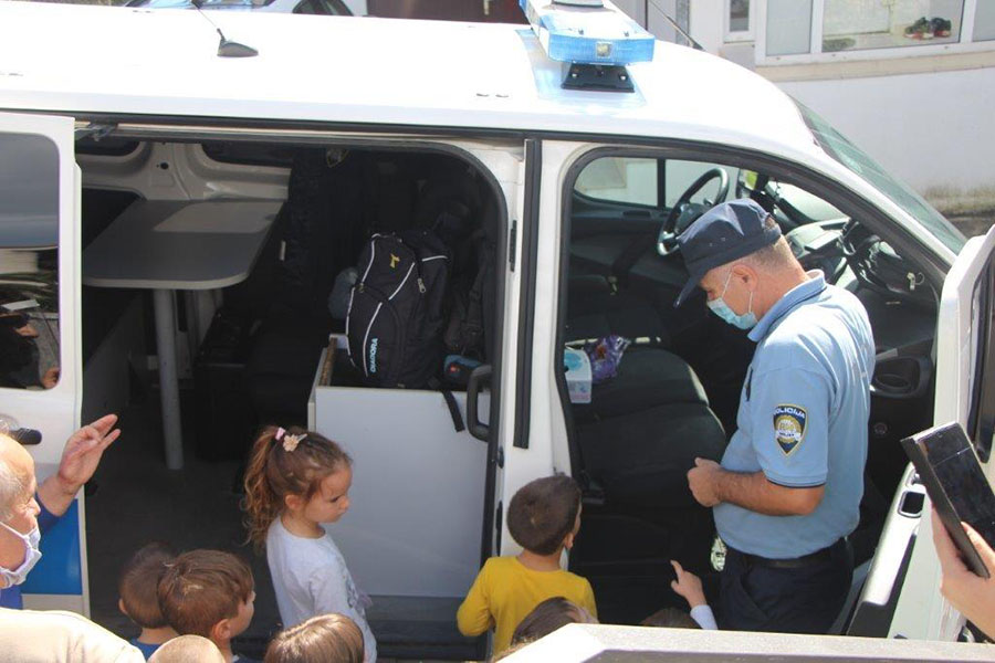 Djeca su razgledala policijsko vozilo, a policija im je za kraj kao dar podijelila slikovnice.