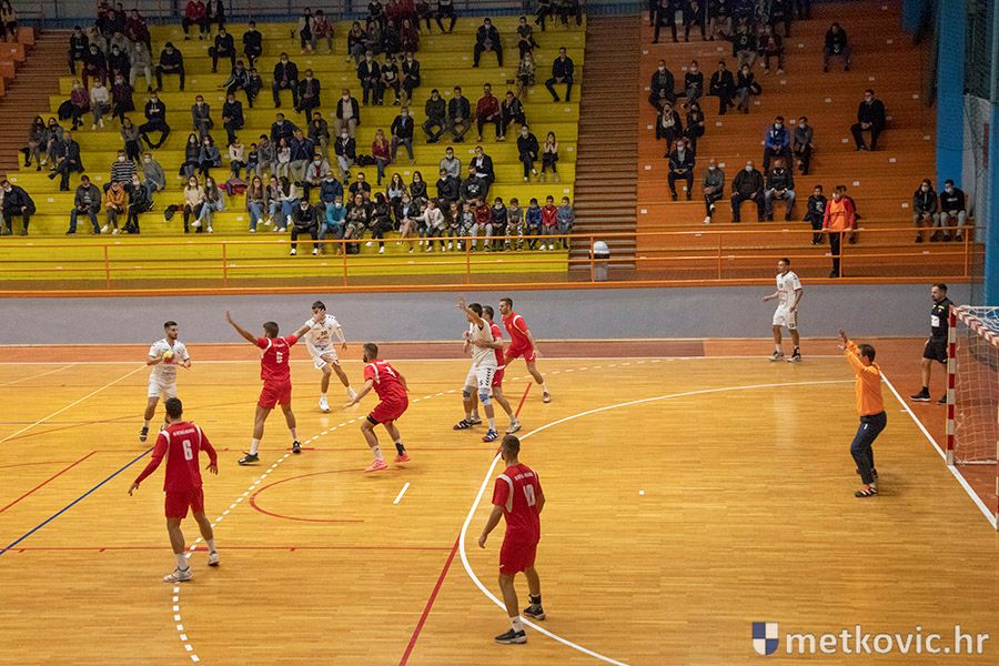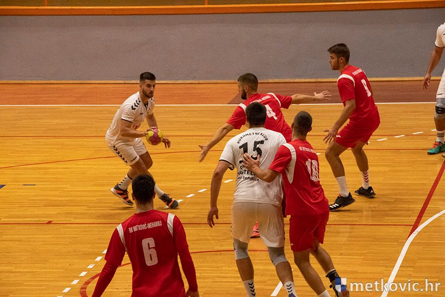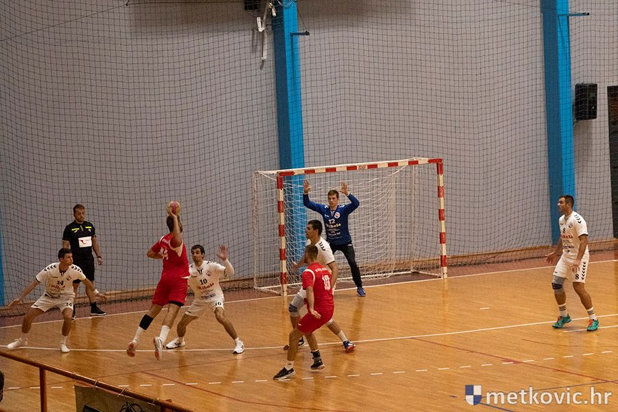 Metković, 18.10.2020. - U 4. kolu 1. HRL Jug rukometaši Metković – Mehanike pobijedili su u Gradskoj sportskoj dvorani RK Ribolu iz Kaštela s 21:20 i tako zauzeli prvo mjesto na tablici.