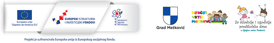 Projekt „ Za skladnije i ugodnije predškolske dane u Dječjem vrtiću Metković“ UP.02.2.2.08.0020 provodi Grad Metković u partnerstvu s Dječjim vrtićem Metković, koji se financira iz Europskog socijalnog fonda u 100%-tnom iznosu, unutar Operativnog programa Učinkoviti ljudski potencijali 2014.-2020. Vrijeme provedbe projekta je 30 mjeseci. Ukupna vrijednost projekta je 6.083.886,65 kuna.