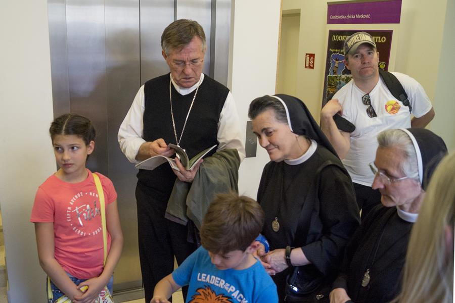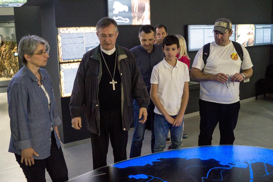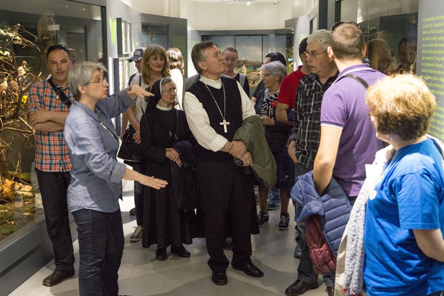 Metković, 17.4.2016. - Splitsko-makarski nadbiskup mons. Marin Barišić jučer je svoje suradnike i djelatnike Nadbiskupije poveo na izlet u svoj rodni kraj. Po jezeru Kuti provezli su se lađom, u Vidu su posjetili Arheološki muzeja Narona, a u Metkoviću su pogledali postav Prirodoslovnoga muzeja Metković.