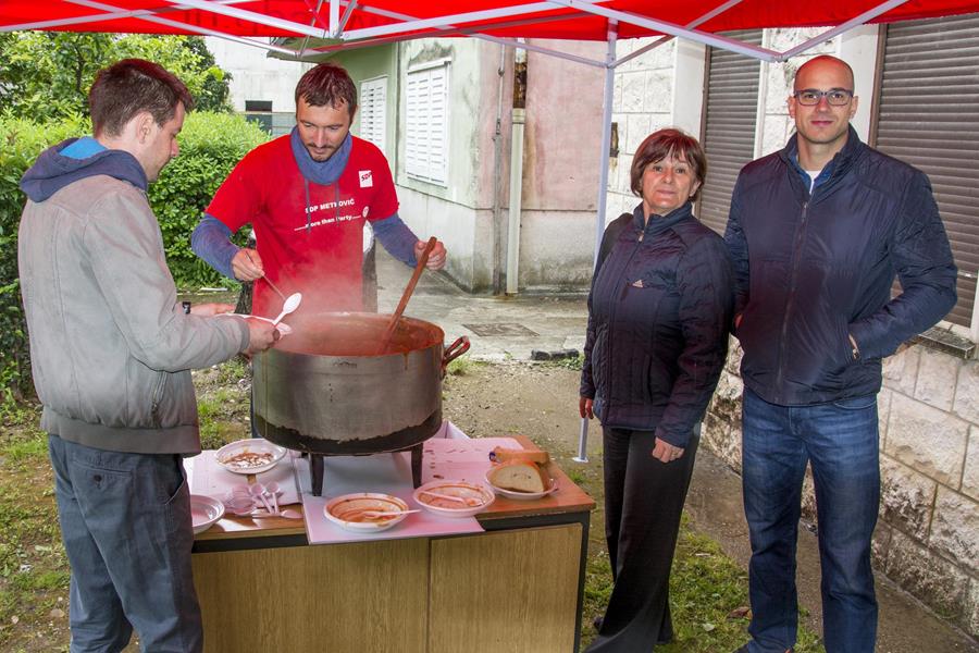 1.5.2016. - Gradske organizacije SDP-a i HSU-a Metković danas su povodom Praznika rada svojim članovima i simpatizerima te svima ostalima priredile druženje uz kuhani grah s kobasicama. Prvotna im je zamisao bila da to bude u Gradskome parku, ali je zbog kiše druženje prebačeno u Zgradu političkih stranaka.