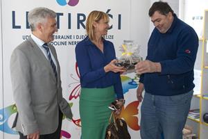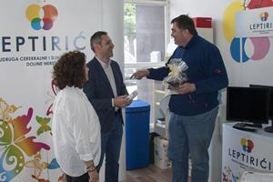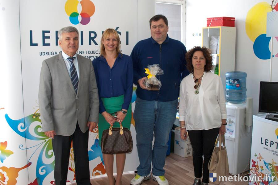 Metković, 5.5.2016. - Predstavnici HEP-a na čelu s direktoricom Sektora za tržišnu i marketinšku strategiju Vlatkom Kamenić Jagodić, u pratnji direktora Elektrodalmacije Saše Kraljevića te voditelja pogona Metković Nedjeljka Milića uručili su vrijednu donaciju Udruzi cerebralne i dječje paralize doline Neretve Leptirići.