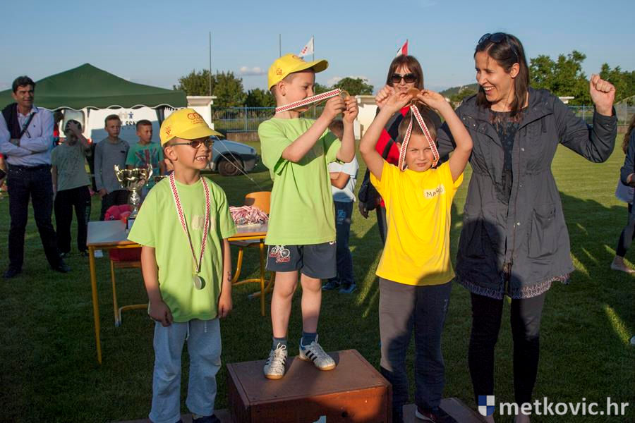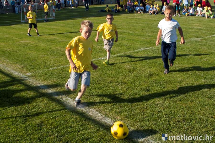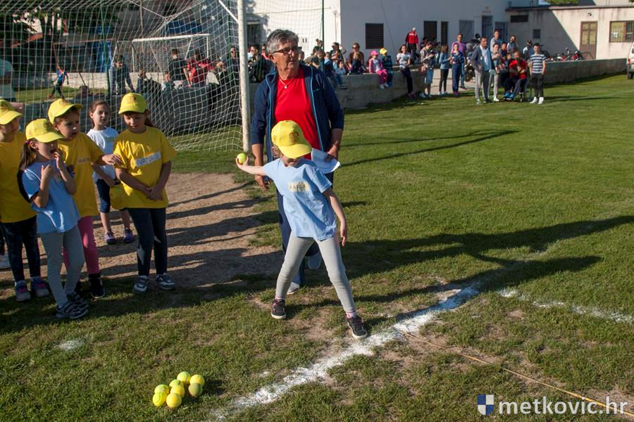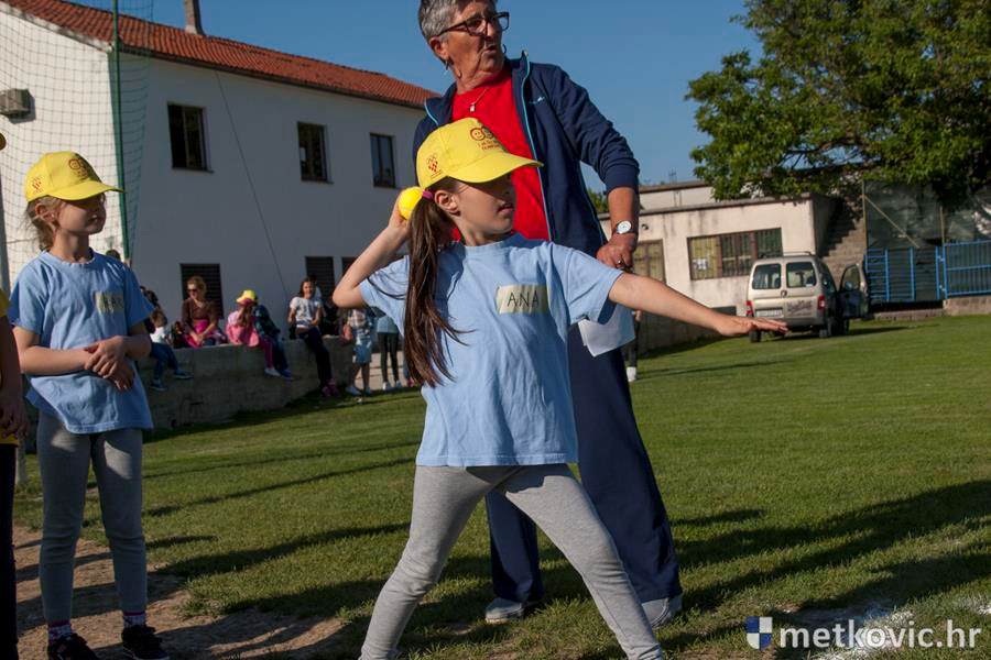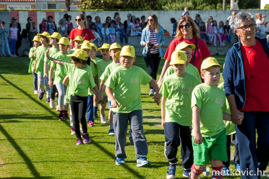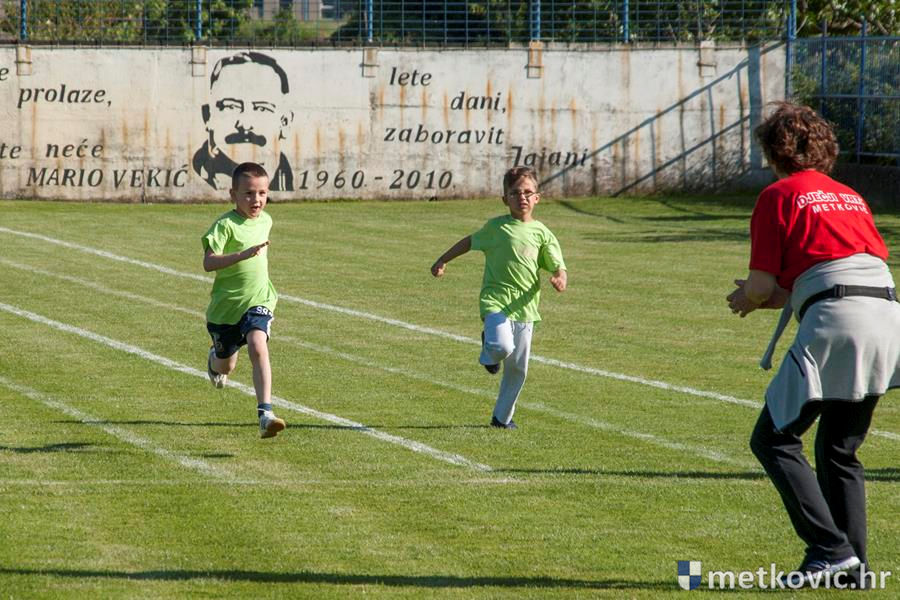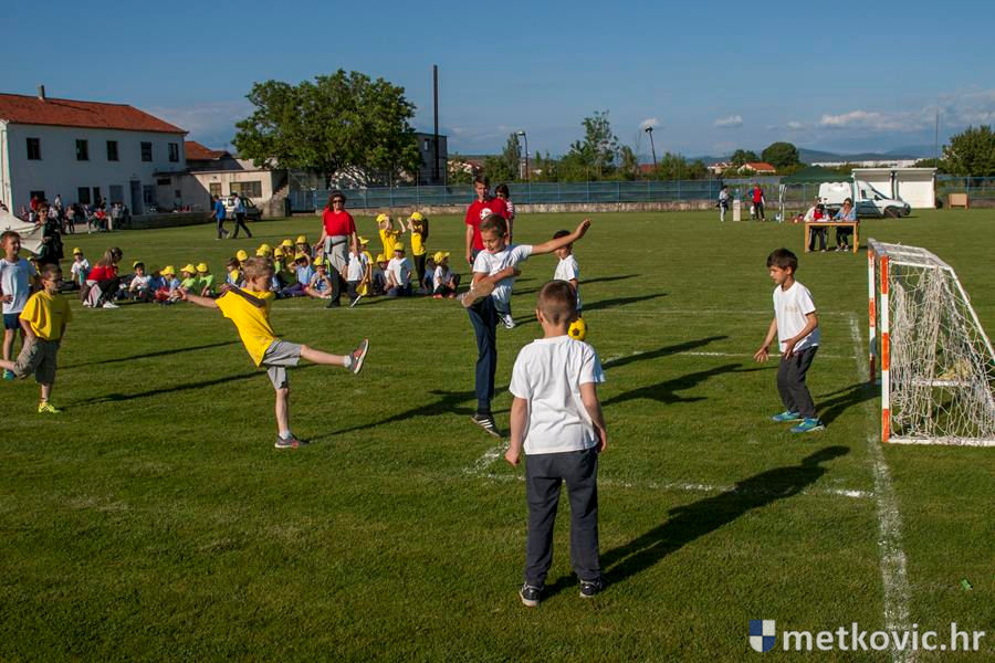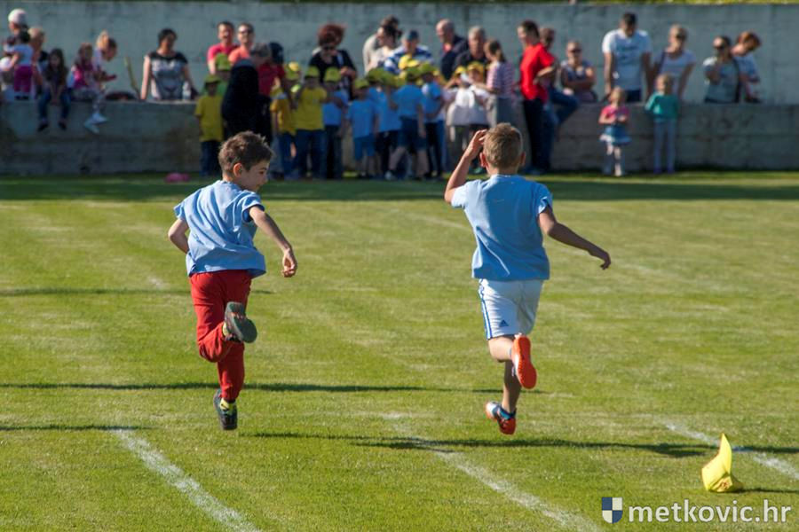 Četiri ekipe: Slavuji, Galebovi, Vjeverice i Žapci, svaka u svojim majicama i s kapama, natjecale su se u tima atletskim disciplinama: trčanju na 50 m, skoku udalj s mjesta i bacanju loptice, s time da su se odvojeno natjecali dječaci i djevojčice, a na kraju je uz bučno navijanje odigran malonogometni turnir.