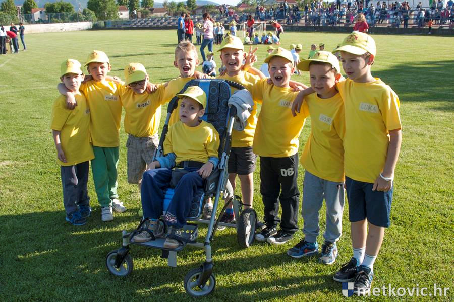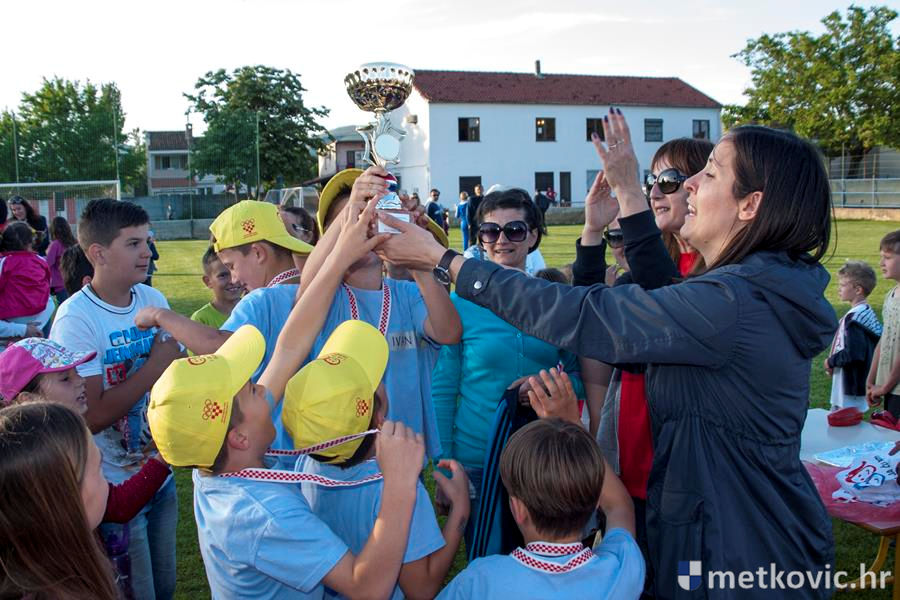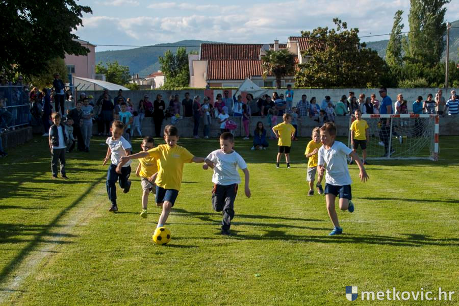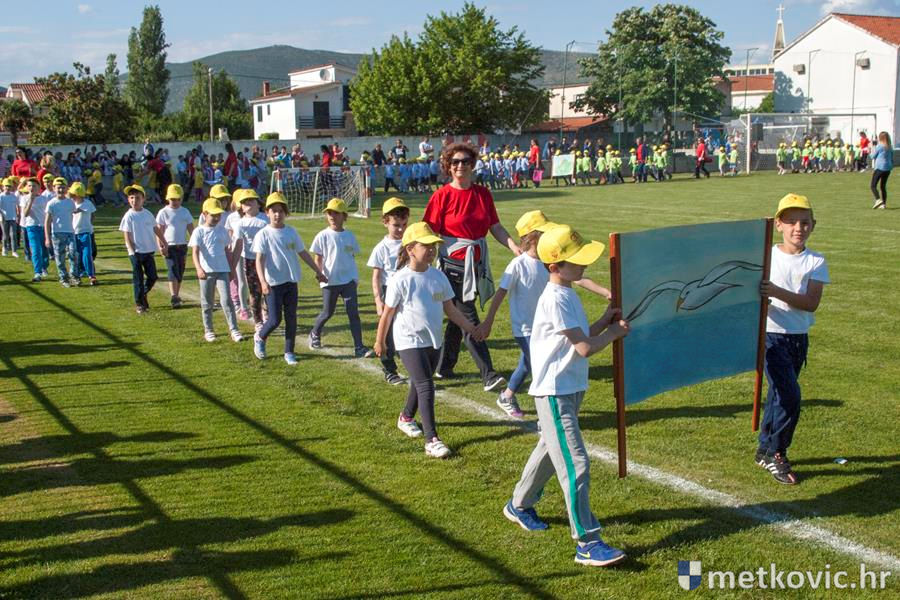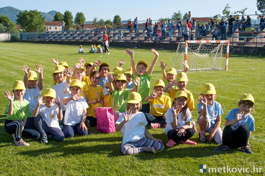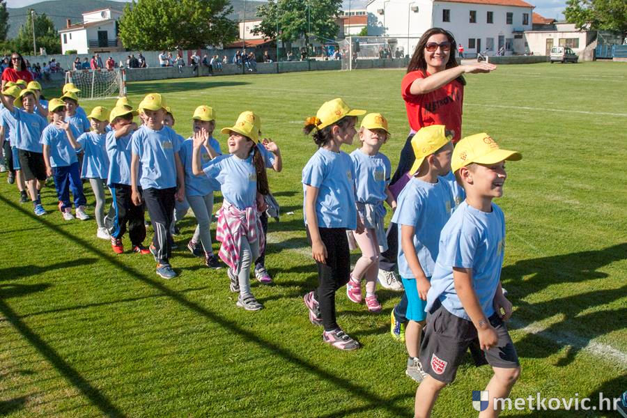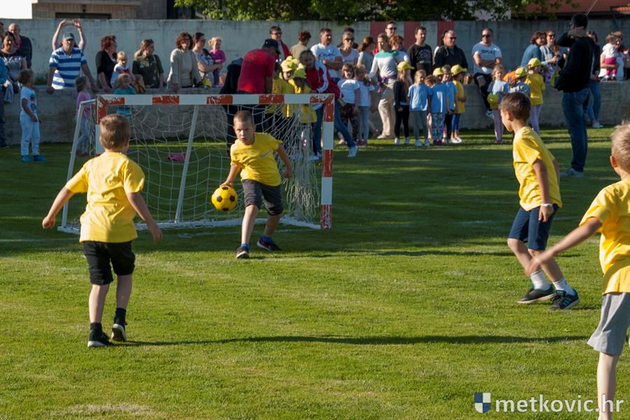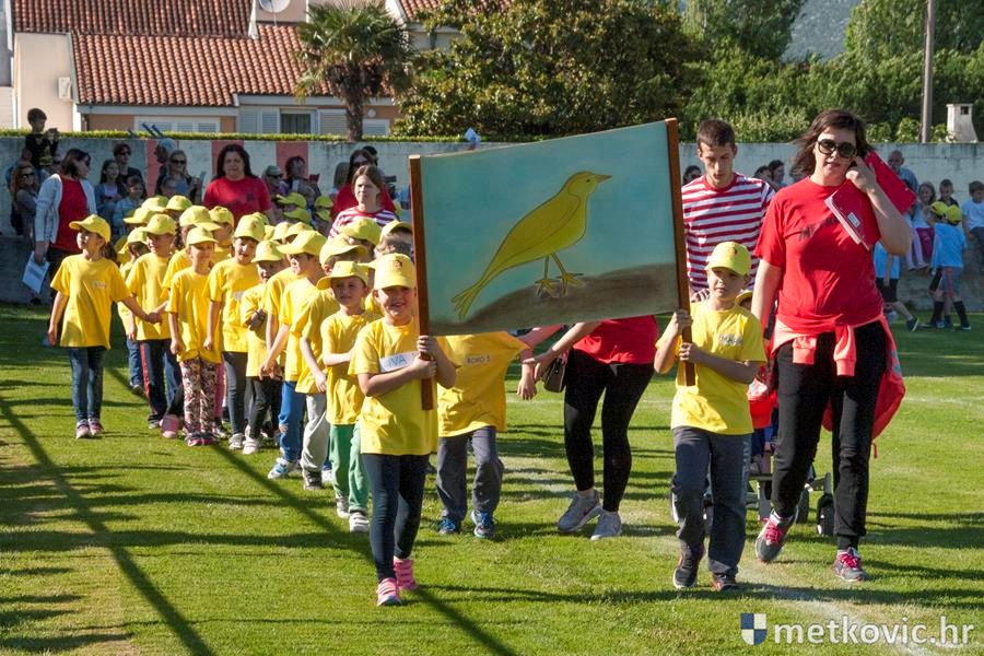 Četiri ekipe: Slavuji, Galebovi, Vjeverice i Žapci, svaka u svojim majicama i s kapama, natjecale su se u tima atletskim disciplinama: trčanju na 50 m, skoku udalj s mjesta i bacanju loptice, s time da su se odvojeno natjecali dječaci i djevojčice, a na kraju je uz bučno navijanje odigran malonogometni turnir.