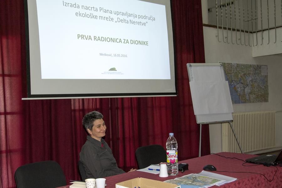 Nakon obrazloženja ciljeva i programa Plana upravljanja koje je dionicima predstavila Željka Rajković iz WWF-a, te predstavljanja sudionika iste, kao prvi dio radionice slijedile su prezentacije o području Delte Neretve kao i o djelatnosti Javne ustanove. Radionicu je moderirala Andrijana Parić, vanjski suradnik projekta, dok su djelatnici Javne ustanove Kristina Šetka i Dubravko Dender upoznali prisutne s područjem ekološke mreže Delte Neretve, projektima koji se tamo provode kao i o samoj djelatnosti Javne ustanove.