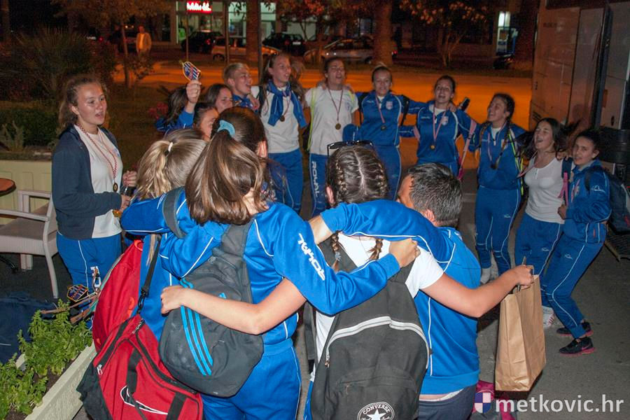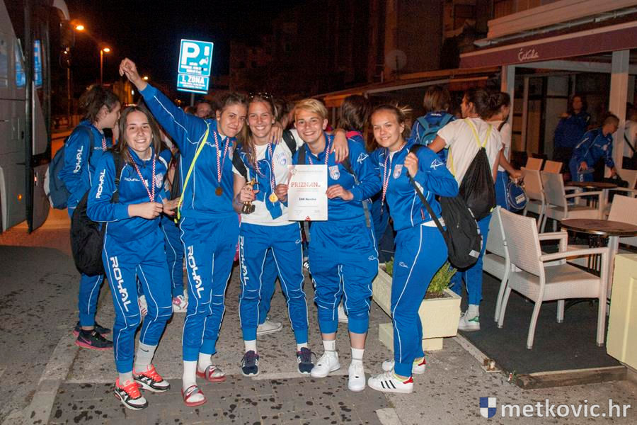 Metković, 30.5.2016. - Jutros nešto prije četiri sata iz Svetoga Martina na Muri vratile su se kadetkinje i vodstvo ŽNK Neretva okićeni brončanim medaljama. U Sportskoj ulici dočekali su ih roditelji i rodbina, a kako je slavlje izgledalo zabilježio je Josip Vučković.