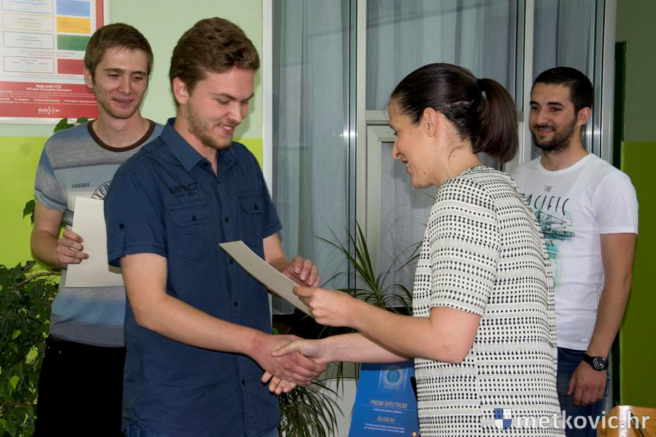 Riječ je o bivšim učenicima te škole Josipu Tošiću, Vlahi Matiću, Nikoli Mareviću i Josipu Krešiću te njihovu prijatelju i vanjskom suradniku iz Lovri Radi Opuzena, koji su jednim znanstvenom eksperimentu mjerili promjene rezonancije sonde meteorološkim balonom lansirane u stratosferu na visinu od 32 km. Tijekom uspinjanja sonde njezina se brzina povećavala od početnih 32 km/h do konačnih 175 km/s, a elektronički je sklop – senzorno računalo, koji su sami konstruirali, mjerio promjene rezonantne frekvencije. Balon se na visini iznad 32 km raspuknuo, a šest se sonda (šest timova od 21, koji su projekt doveli do kraja) uz pomoć padobrana vratilo na zemlju. Nakon analize i obrade prikupljenih podataka pokazalo se da je se konačna rezonantna frekvencija sonde u odnosu na početnu povećala 1,3 %, čime je dokazan tzv. pogo-efekt, koji je daleke 1970. prouzrokovao havariju na ekspediciji Apolla 13. Stručnjaci iz neprofitne Udruge Stellar ocijenili su da je rad metkovskih učenika Promjena pogo oscilacija rezonantnog sustava pod utjecajem promjenjivih atmosferskih uvjeta najbolji i Prism Spectrumu dodijelili nagradu od 30 000 kuna.
