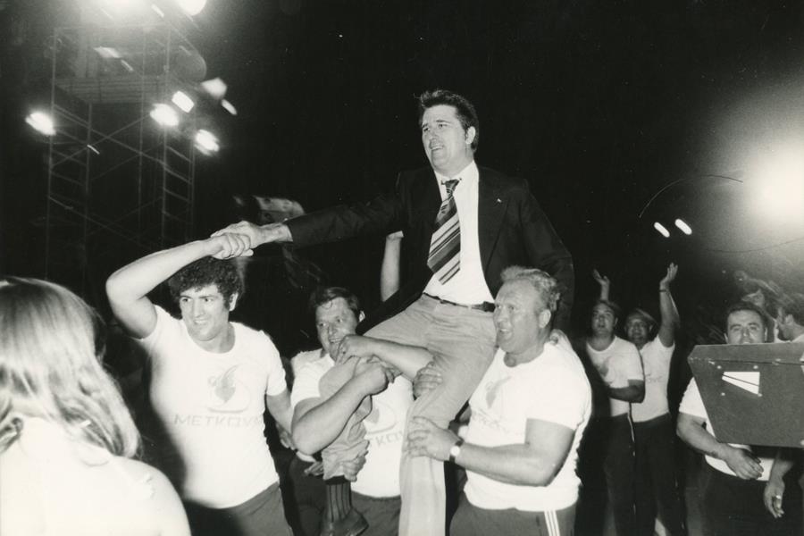 Članovi Uprave Građanske glazbe Metković 1985. godine. Slijeva nadesno sjede: Ivo Gabrić (tajnik), Pero Jurjević (predsjednik) i Aleksa Vištica. Stoje: Ante Martinac, Ivo Brljević i Miće Volarević