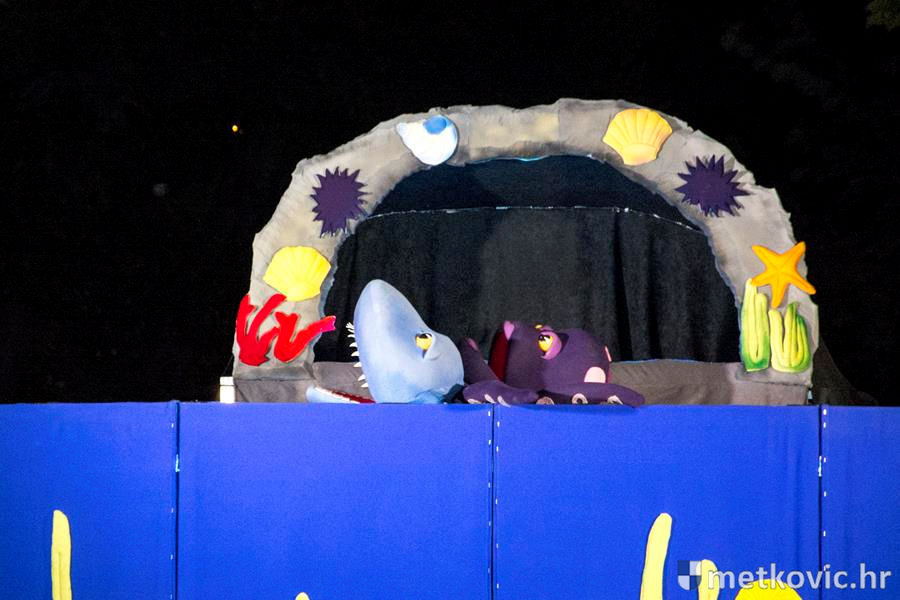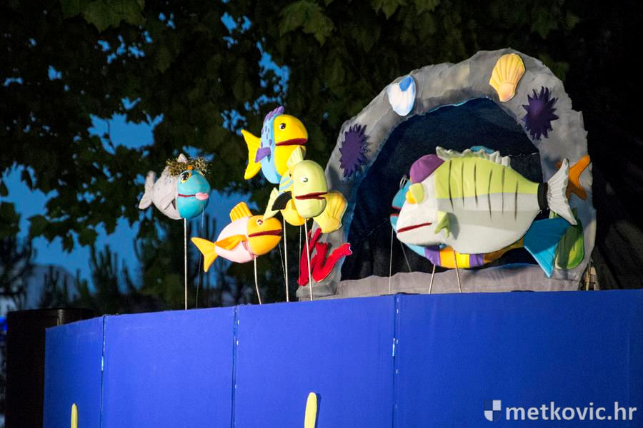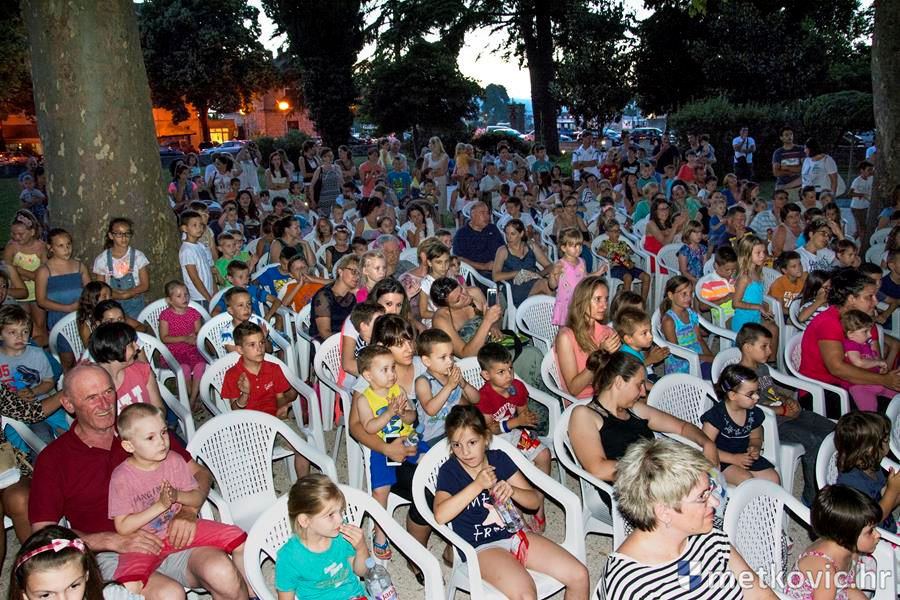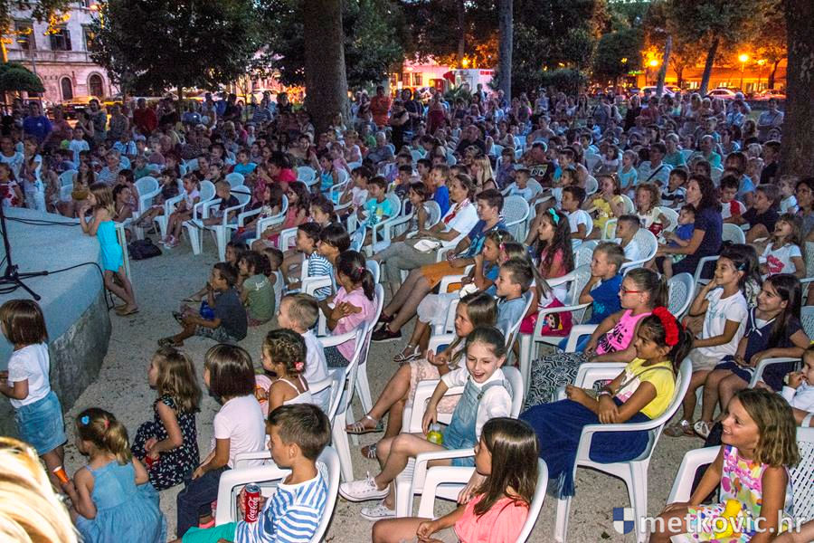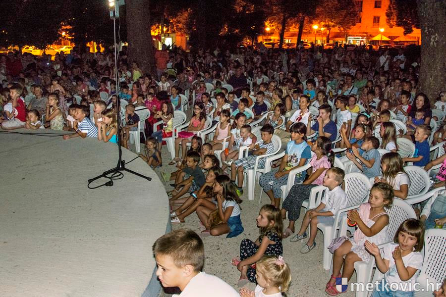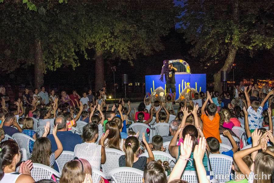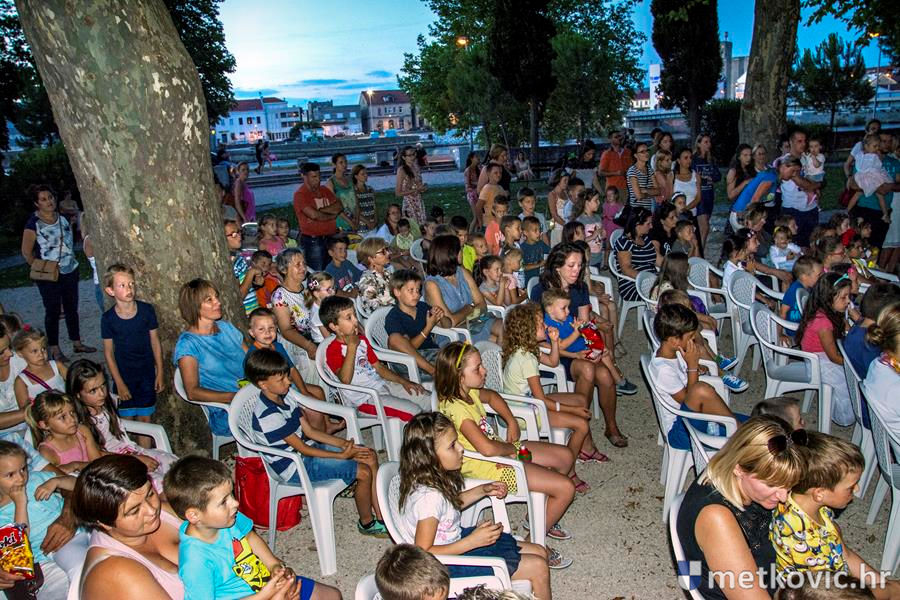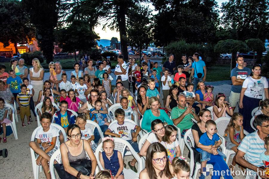 Metković, 6.7.2016. - Lutkarski mjuzikl Dobro je činiti dobro, u izvedbi splitske kazališne kuće Produkcija Z, sinoć je u Gradski park privukao preko četiri stotine mališana, njihovih roditelja, baka i djedova.