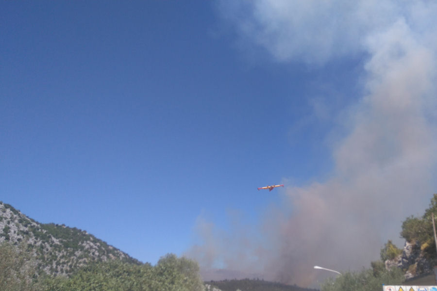 Metković, 3.8.2016. - Danas u prijepodnevnim satima iznad Glušaca je izbio požar koji trenutno gase vatrogasci JVP-a Metković i DVD-a Metković te njihove kolege iz Čapljine.