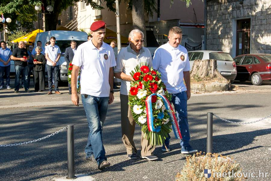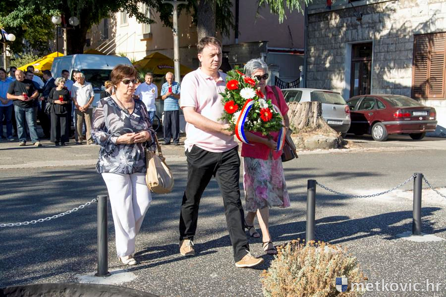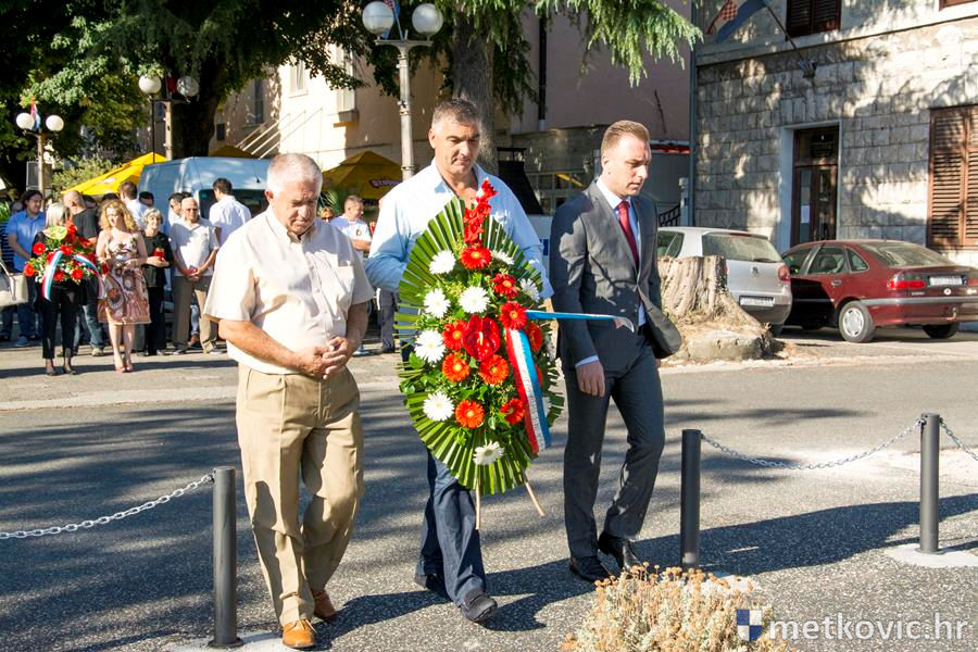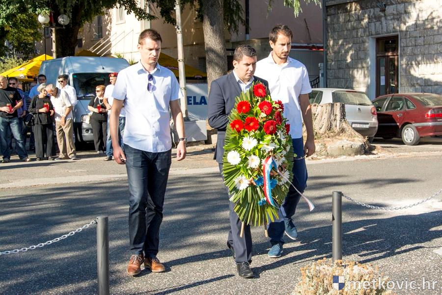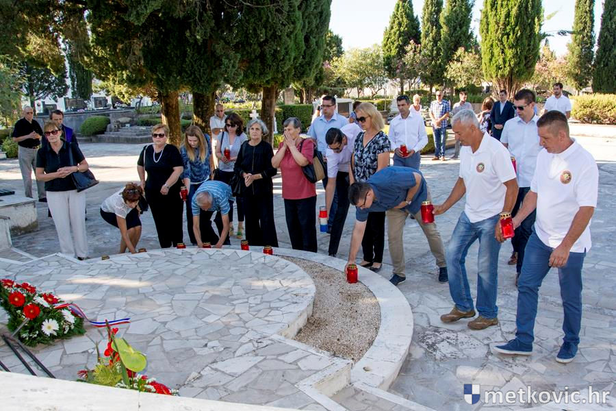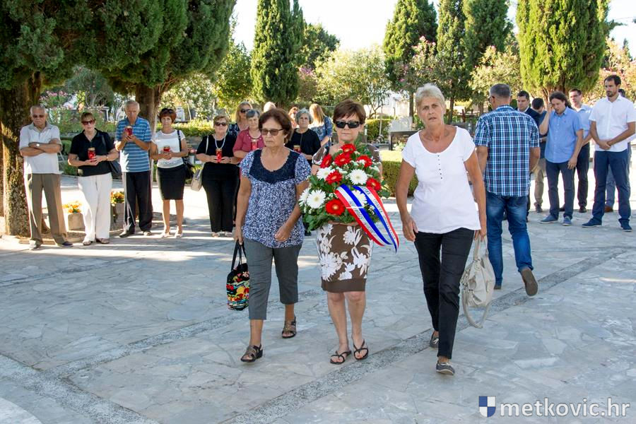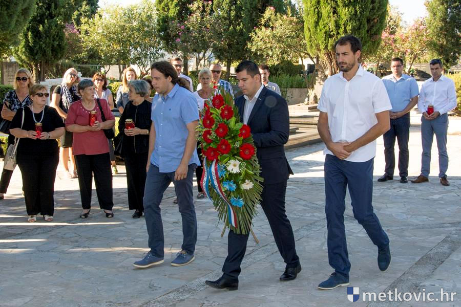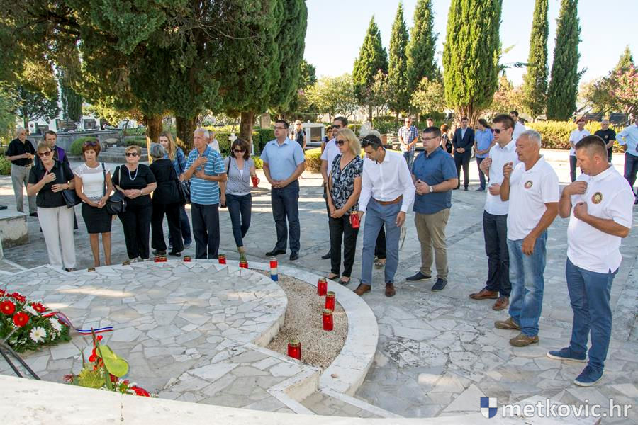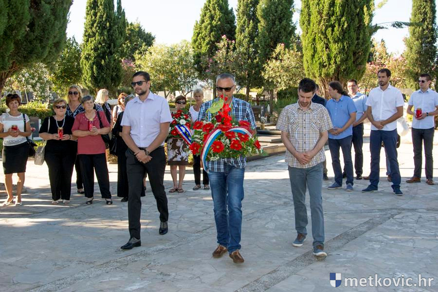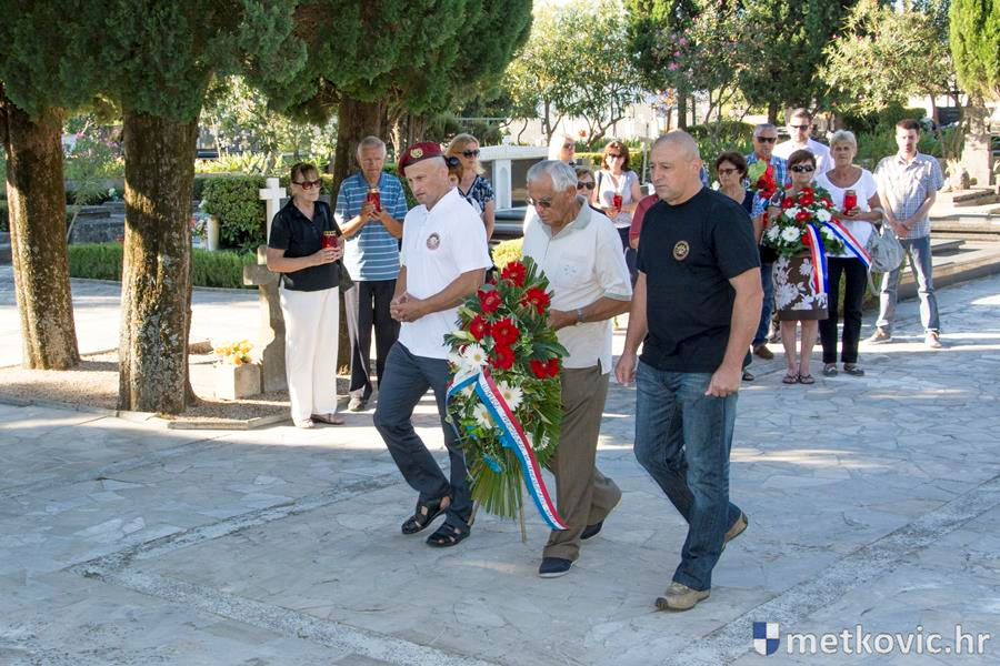 Metković, 4.8.2016. - Povodom Dana pobjede i domovinske zahvalnosti te Dana hrvatskih branitelja, jutros je novi župnik Župe sv. Ilije fra Ante Bilokapić na Gradskome groblju sv. Ivana Nepomuka u nazočnosti predstavnika udruga proizašlih iz Domovinskoga rata te predstavnika Grada Metkovića i političkih stranaka molio obred zahvale poginulim hrvatskim braniteljima i za odrješenje njihovih duša. Nakon toga su pred Središnjim križem položeni vijenci i zapaljene svijeće, a to isto je učinjeno pred Spomenikom Metkovcima poginulima u Domovinskome ratu.
