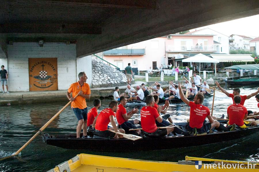 U natjecateljskom dijelu sudjelovale su posade KUU Škrapa Momići, UL Gospa Karmelska Krvavac, UL Jerkovac te Veterani IV. gbr. HV-a. Sustav natjecanja je bio takav da je svaka posada mora veslati utrku protiv ostalih posada. Posada koja prikupi najviše pobjeda pobjednik je natjecanja. Nakon svih utrka najboljom se pokazala posada UL Gospa Karmelska iz Krvavca, koja je imala sve tri pobjede. S dvije pobjede druga je bila posada KUU Škrapa Momići, s jednom pobjedom veterani su zauzeli treće mjesto, dok je Jerkovac ostao bez pobjede. U revijalnoj utrci lađari UL Domagojevi gusari pobijedili su juniore UL Jerkovac. Nakon završetka natjecanja na red je došla i podjela nagrada. Odličje za četvrto mjesto UL Jerkovac dodijelio je Ante Vučić, trećeplasiranim Veteranima IV. gbr. nagradu je dodijelio saborski zastupnik Mosta nezavisnih lista Mario Klobučić. Drugoplasirana posada KUU Škrapa Momići odličje je dobila od predsjednika Udruge lađara Neretve Dalibora Obradovića. Na kraju je red došao i na pobjednike, odnosno UL Gospa Karmelska iz Krvavca, kojima je nagradu uručio zamjenik gradonačelnice Nikola Grmoja.