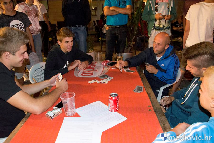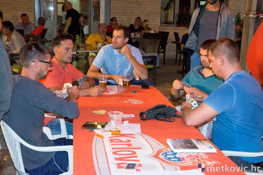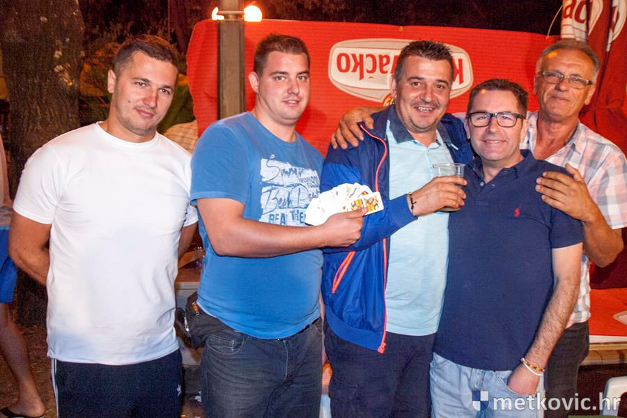 Što se tiče turnira u kartama između velikoga boja parova u igri trešeta i briškule treće mjesto i iznos od 300 kuna su podijelili su ekipe koje čine Tomo Erkapić i Joško Đakula, s onom u kojoj su Ivica Bulum i Miljan Kadijević. Do glavne nagrade od 1200 kuna najbolje su otkartali pobjednici Leo Perdeda i Ante Šiljeg Mera, koji su u završnoj partiji rezultatom 2:1 dobili oca i sina Klobučiće, Iku i Alena, koji su za drugo mjesto nagrađeni s 500 kuna.