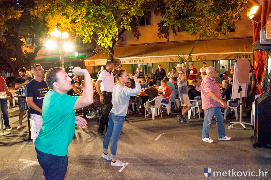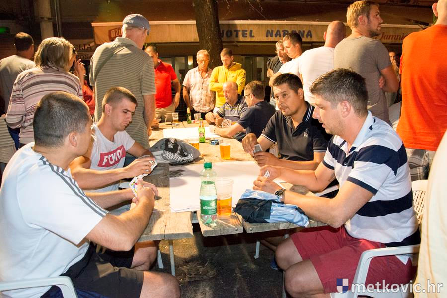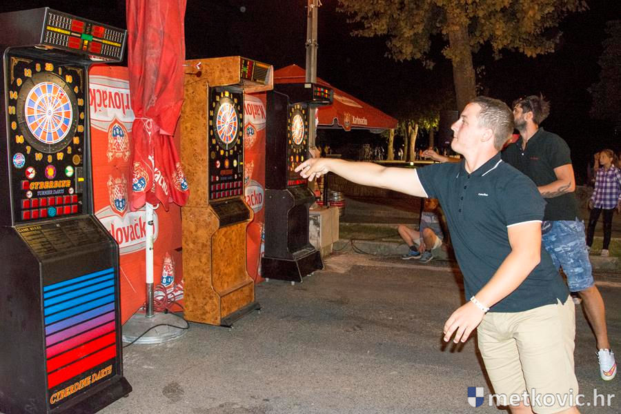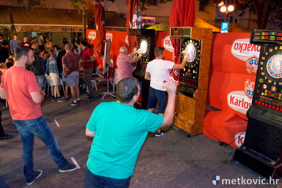 Metković, 13.8.2016. - Na Trgu kralja Tomislava u Metkoviću jučer s početkom u 19 sati otpočela su dva paralelna turnira, onaj u kartama i turnir u pikadu. Bilo je dosta prijavljenih natjecatelja te su turniri potrajali do ranih jutarnjih sati, tako da se pobjednik pikado turnira u 501-ici znao tek u 3 sata u noći.