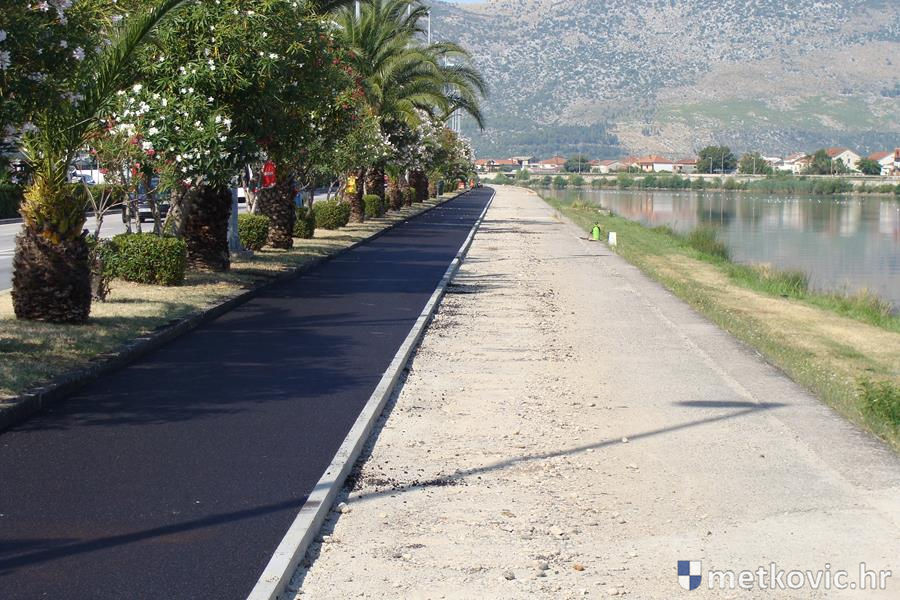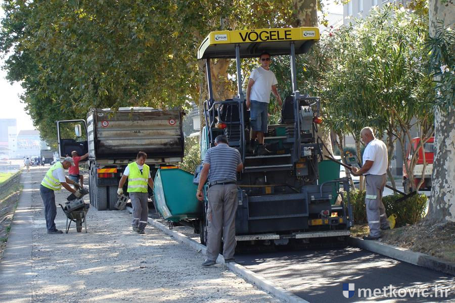 17.8.2016. - Jutros je započelo asfaltiranje biciklističke staze u sklopu rekonstrukcije Šetališta 116. brigade HV-a. Prvo se nanosi temeljni sloja asfalta, a od izvođača radova tvrtke Ipsum d.o.o. doznajemo da je za slijedeći tjedan planirano popločavanje šetnice betonskim kockama.