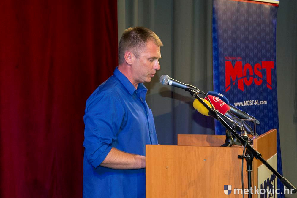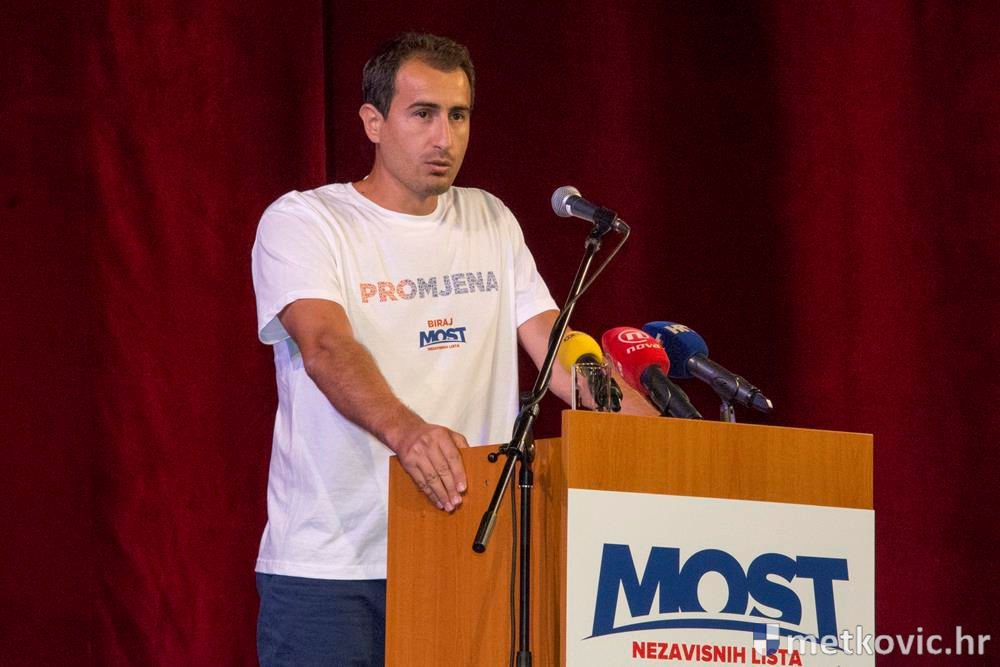 Most je Metkovkama i Metkovcima predstavio većinu svojih kandidata s liste u X. izbornoj jedinici, čiji je nositelj Božo Petrov. Nakon himne i minute šutnje u počast poginulim hrvatskim braniteljima, voditelj programa Goran Komazin Meka za govornicu je pozvao bivšega Mostovog saborskog zastupnika Marija Klobučića da kao domaćin otvori skup.
