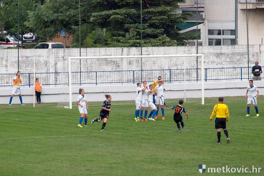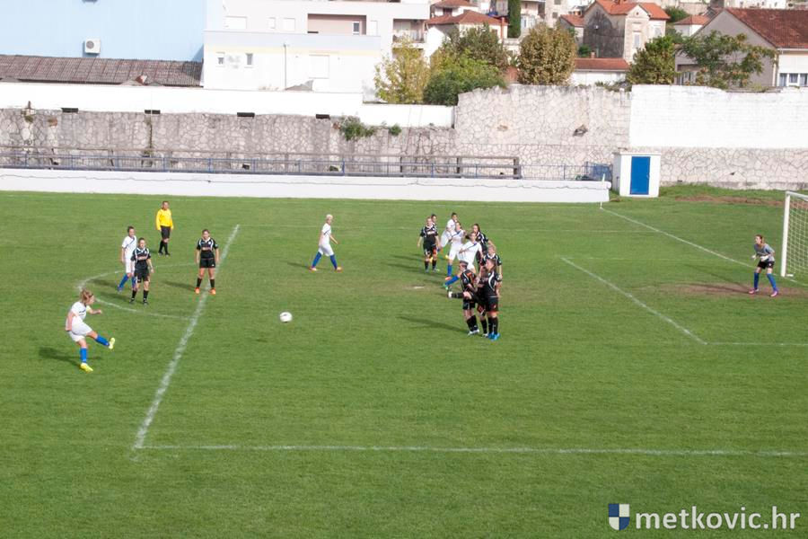 U vodstvo prve dolaze gošće pogotkom Petre Mandić Jelaske u sedmoj minuti, ali domaće igračice nakon prekršaja u šesnaestercu gošća ipak uspijevaju 38. minuti susreta izjednačiti pogotkom Ivane Kolovrat s bijele točke. Drugo je poluvrijeme započelo čvrstim dvobojima za loptu, ali volja i upornost više se isplatila gošćama koje u 62. minuti preko Ane Marije Kalamize rezultat podižu na 1:2. Samo osam minuta poslije domaće ponovno izjednačuju, taj put pogodak postiže Veronika Krndelj.