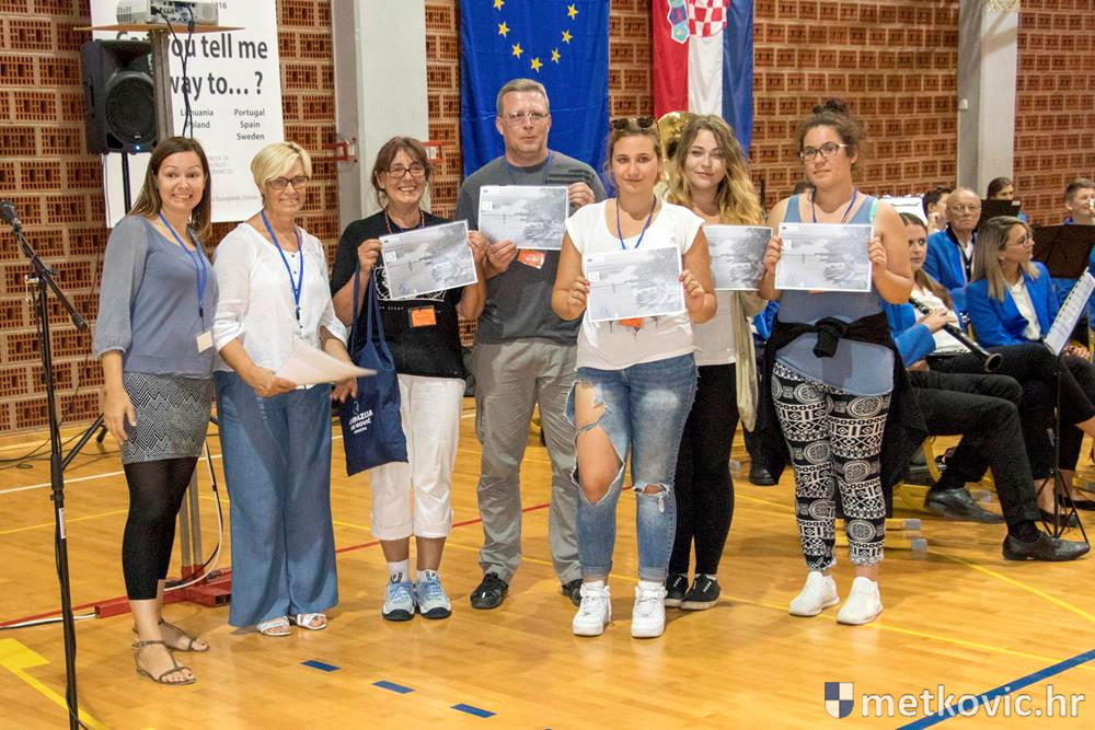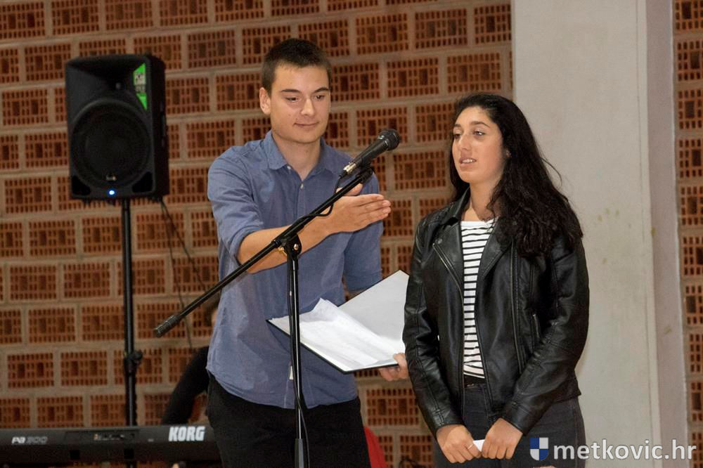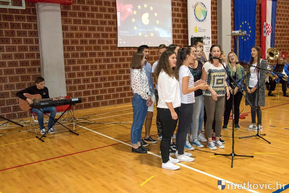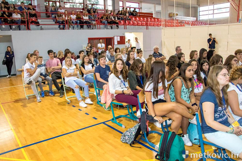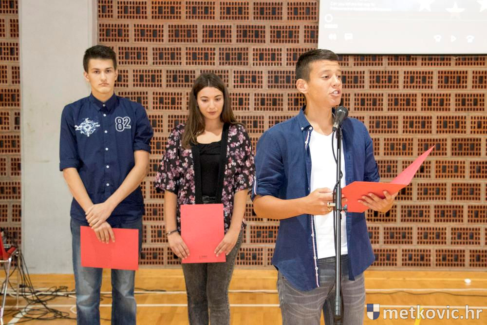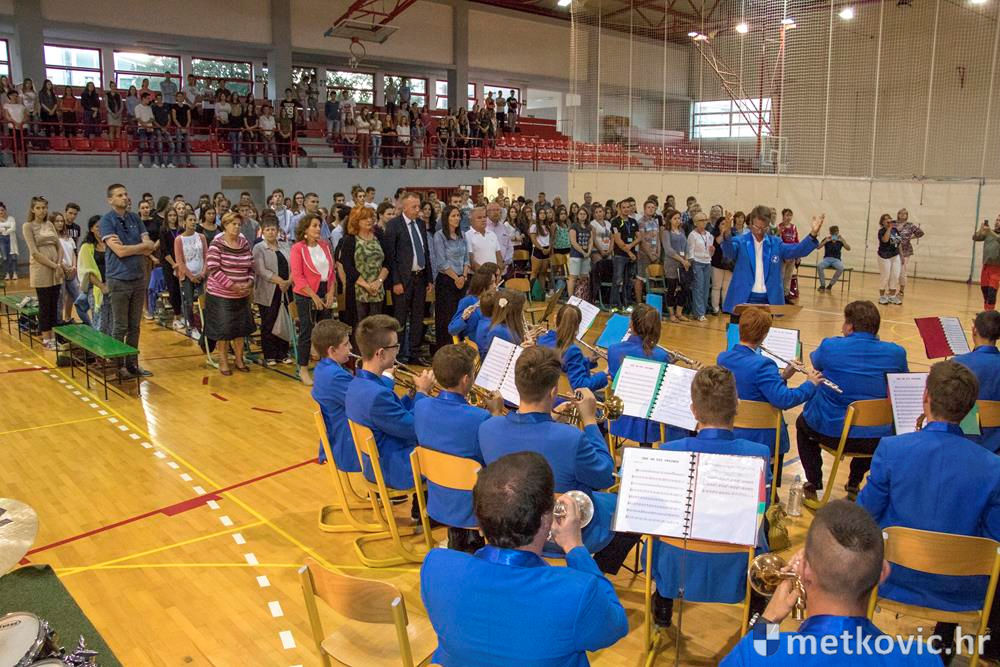 Sinoć je u gimnazijskoj sportskoj dvorani održana završna svečanost, koju je uveličao nastup Gradske glazbe Metković pod ravnanjem Stipana Krmića. Svečanost je započela himnom EU Oda radosti u izvođenju naših glazbara, nakon čega su učenici izvodili prigodan program na svim jezicima, a glazbari su svirali vesele melodije. Tako se moglo čuti kako se smijemo na devet jezika te Ujevićeve i Šimićeve pjesme na hrvatskome, engleskome i njemačkome, a prikazan je i videouradak o važnosti učenja stranih jezika. Naravno, bilo je puno smijeha i pljeskanja.