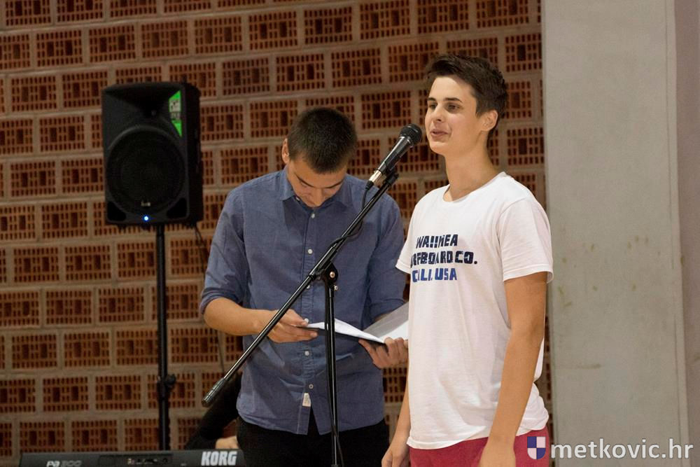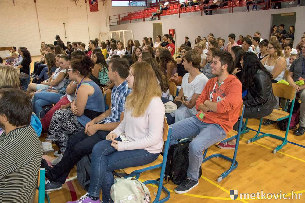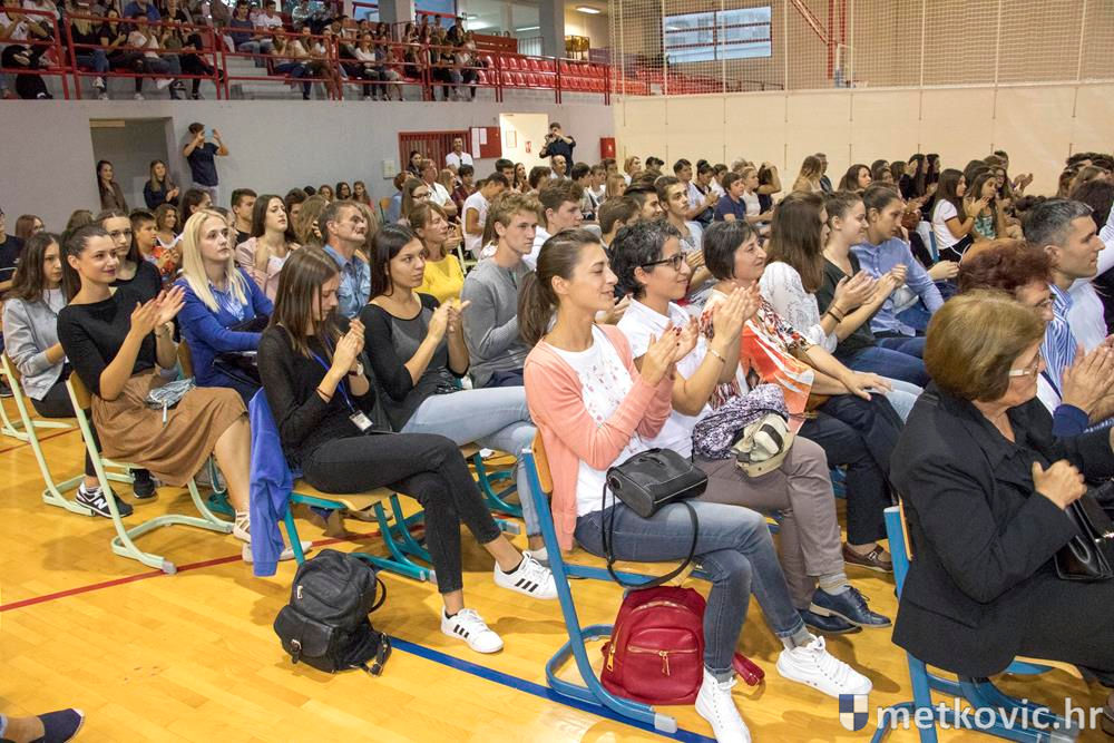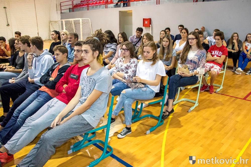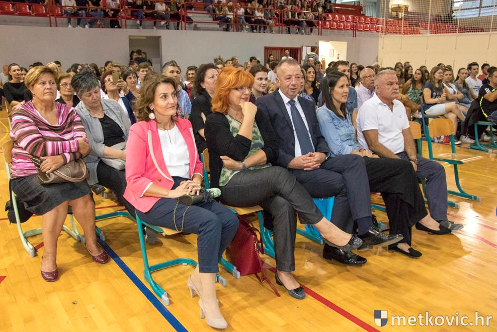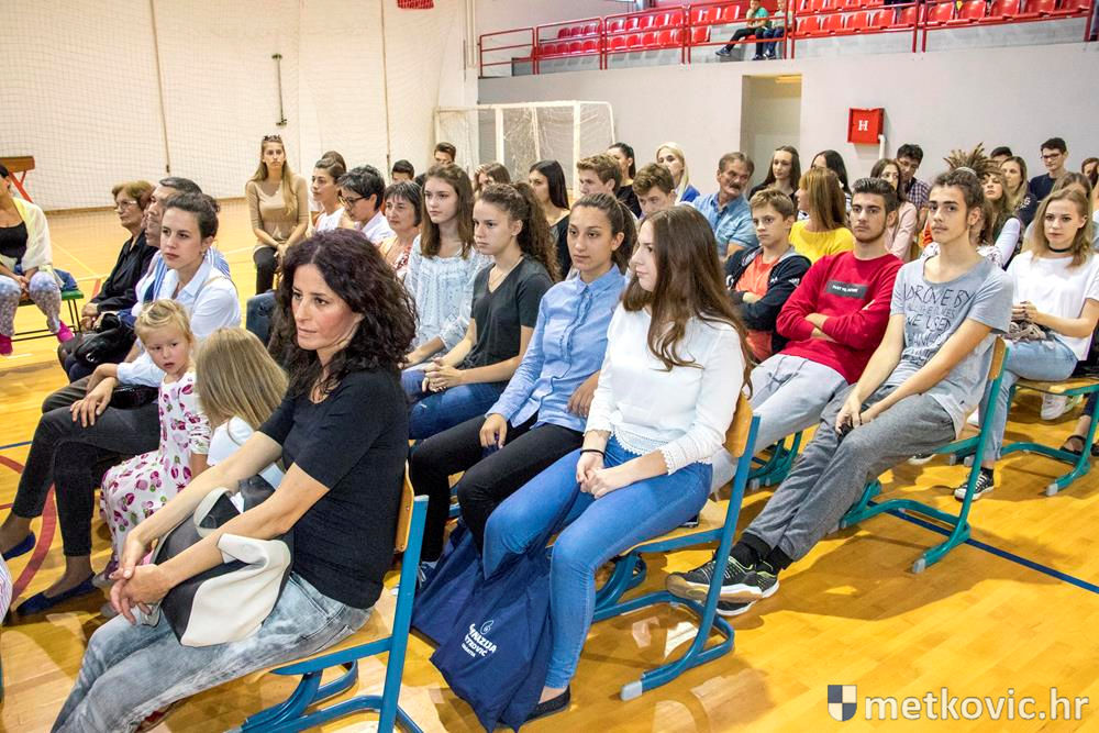 Sinoć je u gimnazijskoj sportskoj dvorani održana završna svečanost, koju je uveličao nastup Gradske glazbe Metković pod ravnanjem Stipana Krmića. Svečanost je započela himnom EU Oda radosti u izvođenju naših glazbara, nakon čega su učenici izvodili prigodan program na svim jezicima, a glazbari su svirali vesele melodije. Tako se moglo čuti kako se smijemo na devet jezika te Ujevićeve i Šimićeve pjesme na hrvatskome, engleskome i njemačkome, a prikazan je i videouradak o važnosti učenja stranih jezika. Naravno, bilo je puno smijeha i pljeskanja.
