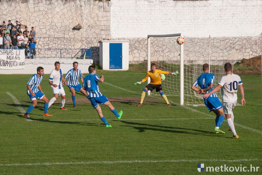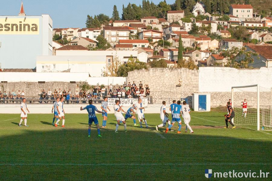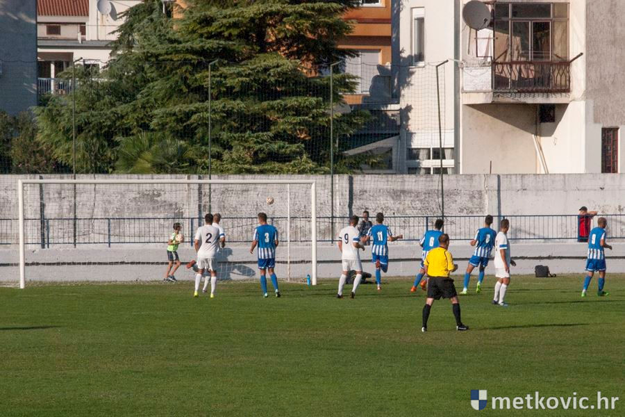 Budući da bi ih pobjeda uvela u borbu za vrh tablice, Metkovci su čvrsto su branili prednost od jednog pogotka sve do posljednje minute prvoga poluvremena, a u njoj je OSK-ov Petar Bašić Šiško svladao domaćega vratara Pavlovića pa se na odmor odlazi s poravnatim i rezultatom.