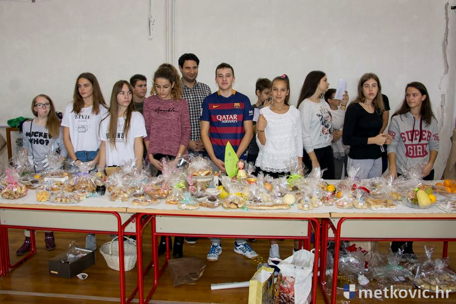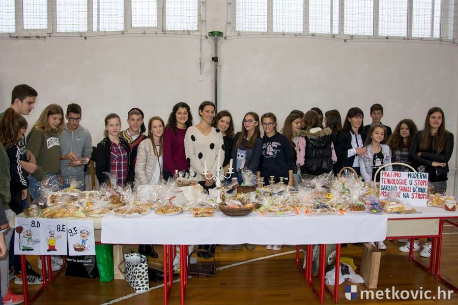 U programu je nastupio Dječji zbor u pratnji časne sestre Vedrane Krstičević, učenici s recitacijama i članovi Mandolinskoga sastava KUD-a Metković pod vodstvom Tome Ercega, a u goste je osnovcima stigla i metkovska gradonačelnica Katarina Ujdur. Sav novac od prodaje uložit će se u kupnju stropnih digitalnih projektora za učionice, a hrana koja se ne proda dat će se potrebitima.