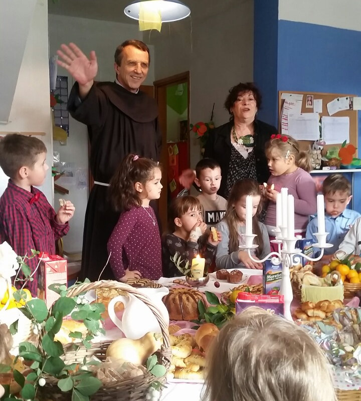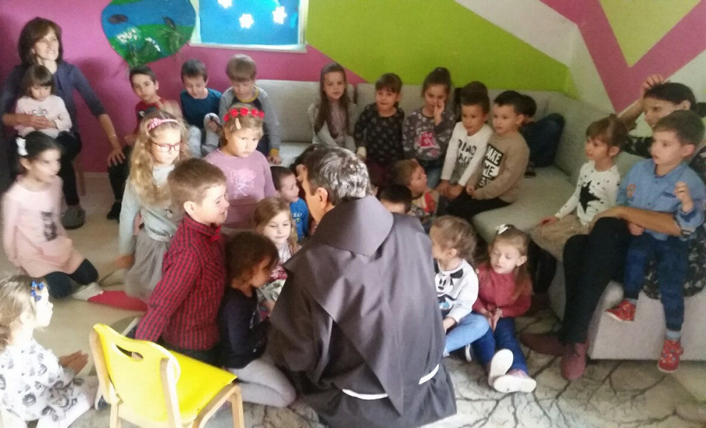 24.10.2016. - U Dječjemu vrtiću Leutna poseban su način proslavili blagoslov plodova jeseni. Župnik fra. Ante Bilokapić s malim se leutićima družio uz prigodne recitacije i pjesmice te podijelio blagoslov njima, njihovim tetama i izloženim plodovima jeseni.