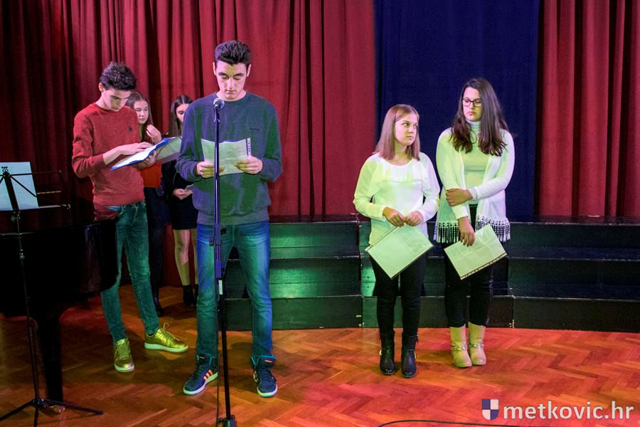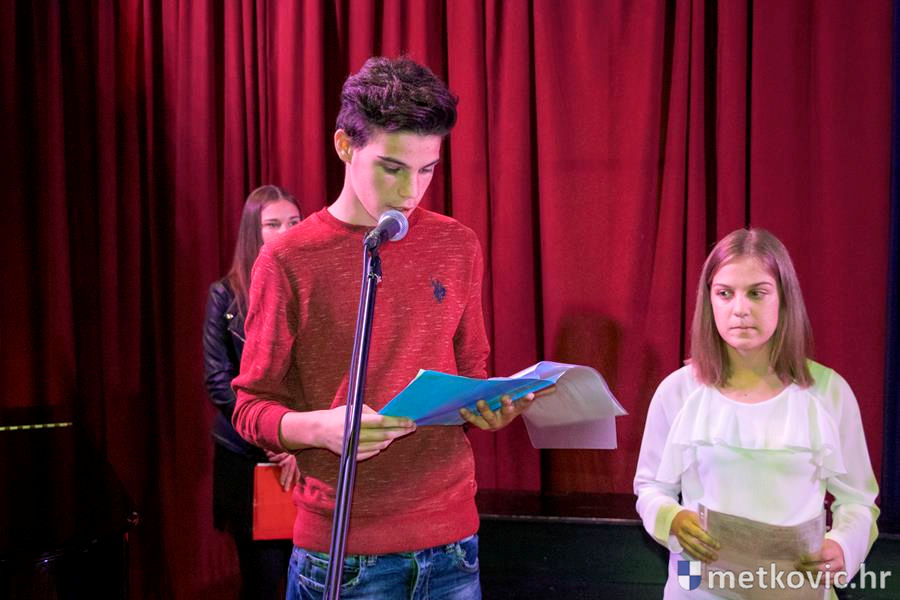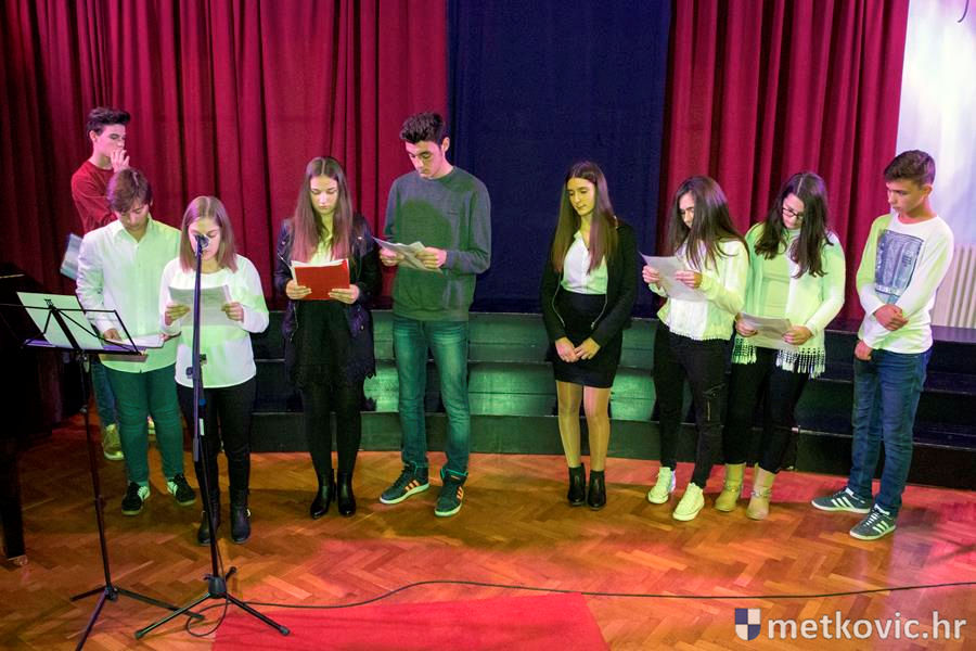 Pod vodstvom prof. Danijele Baćilo, članovi Dramske skupine Srednje škole Metković Duje Doko, Dora Galić, Mateo Karan, Marija Markota, Jelena Perleta, Anamarija Primorac, Neven Kežić, Marijan Orač i Rafaela Vidović govorili su stihove Petra Preradovića, Frana Mažuranića, Silvija Strahimira Kranjčevića i Ivana Gundulića te naših pokojnih sugrađana i hrvatskih pjesnika Vladimira Pavlovića i Stojana Vučićevića.