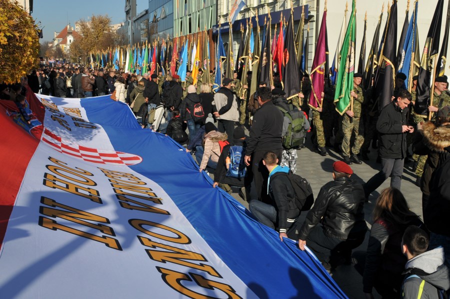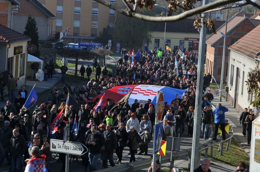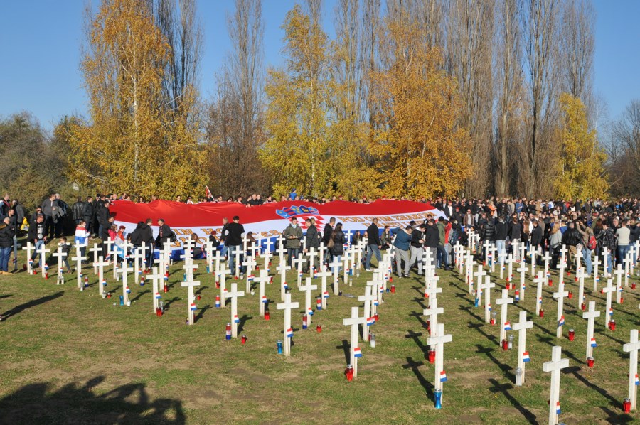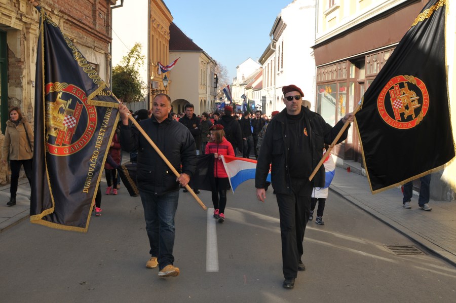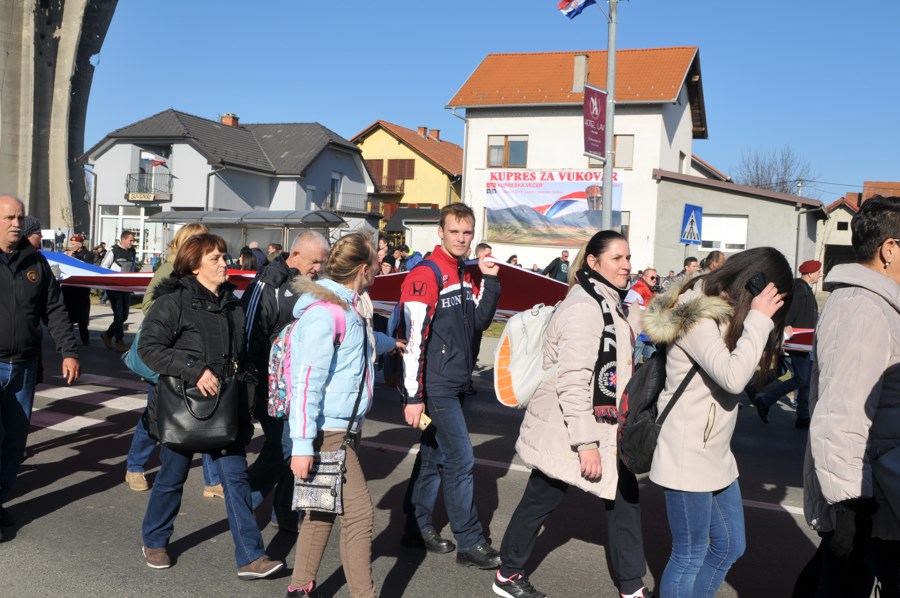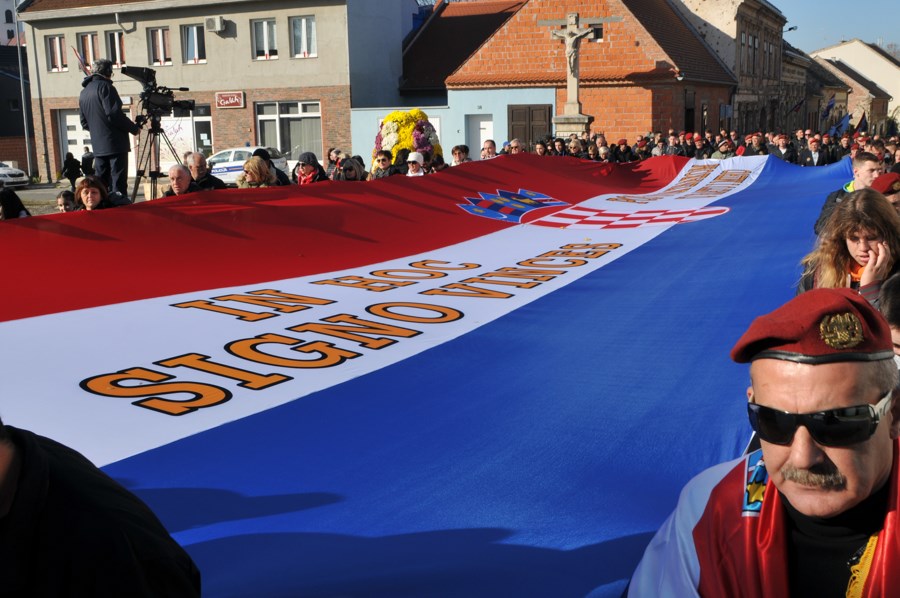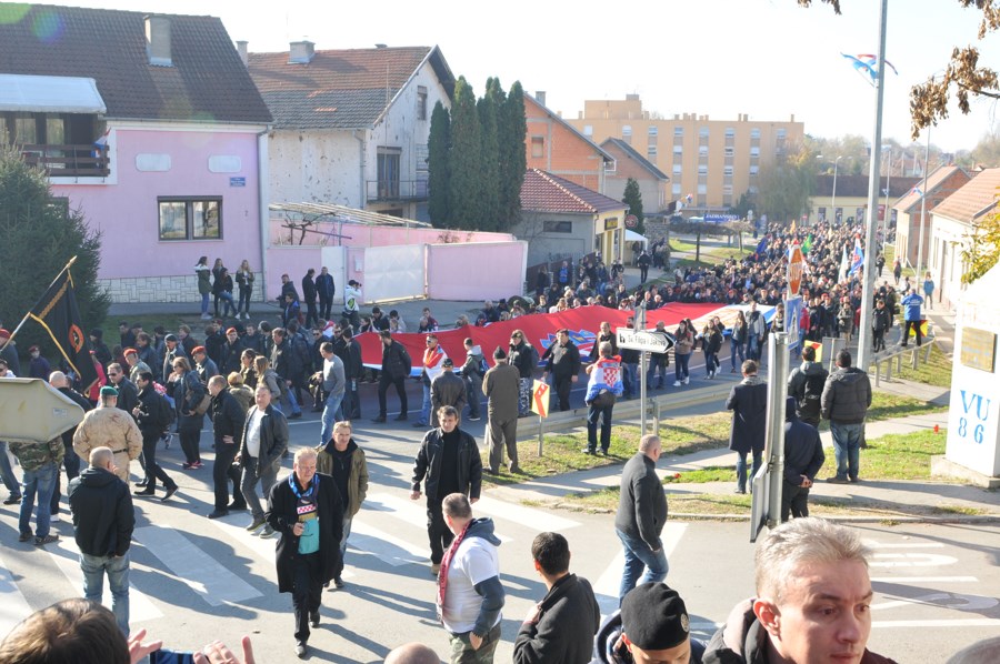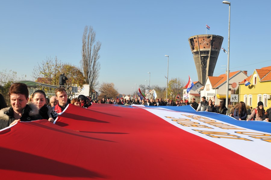 Ako je prije pet godina na 20. obljetnici po procjenama bilo više od 100 tisuća ljudi u Vukovaru, slobodnom procjenom može se reći da ih je danas bilo više od 150 tisuća. Nepregledna kolona ljudi tekla je od bolnice do Memorijalnog groblja. Zbog velike gužve na tom malom prostoru dio ih je išao natrag dok je kolona i dalje stizala. Nakon cijelonoćnog putovanja autobusom iz Metkovića stižemo u Vukovar u ranim jutarnjim satima. Dočekalo nas je prohladno jutro, a u grad su se slijevale rijeke autobusa, kombija, osobnih automobila, a za ovu prigodu stigao je i vlak sa braniteljima iz Splita i Zagreba. Službeni program započeo je ispred bolnice odakle je u 10:30 krenula Kolona sjećanja prema Memorijalnom groblju, koju su predvodili hrvatski branitelji Vukovara i članovi obitelji poginulih, ubijenih i nasilno odvedenih hrvatskih branitelja Vukovara. Kako bi dostojno obilježili ovu obljetnicu izradili smo hrvatsku zastavu dimenzija 20 x 4,5 metara s natpisom u sredini „IN HOC SIGNO VINCES“ - U ovom ćeš znaku pobijediti, slogan iz 4. stoljeća koji se nalazi na grbu IV. gardijske brigade, te na hrvatskom „Pod ovim znakom i u ratu i u miru“. Planirali smo izraditi i veću zastavu, ali zbog nedostatnih financija, unatoč brojnim zamolbama, zahvaljujući, pak, potpori Dubrovačko-neretvanske županije, uspjeli smo je završiti dan uoči obilježavanja. U iščekivanju suboraca iz Splita, koji su stigli vlakom, strpljivo smo čekali u blizini mosta vukovarskog heroja Jean-Michela Nicoliera. Zajedno potom nastavljamo dalje u tišini i s ponosom na licu. Putem nam se priključuju i ostali građani koji su željeli nositi zastavu. Pored nas su i članovi KUD-a Župa Gospa Snježna iz Vida i KUU Škrapa Momići. Po dolasku na ulaz u Memorijalno groblje žrtava iz Domovinskog rata zbog velike gužve ulazimo bočno prema spomeniku, gdje na padini pored 938 bijelih križeva, od kojih svaki simbolizira jednu ekshumiranu žrtvu, razvijamo zastavu. U tijeku je bila sveta misa gdje pored bine na kojoj se odvijalo misno slavlje zatječemo članove Policijske udruge branitelja Policijske postaje Metković 1991, također pristiglih iz Metkovića. Na grobovima poginulih vukovarskih branitelja gore tisuće svijeća, kao i kod spomen-obilježja te kamenih križeva na mjestu masovne grobnice. Kako autobusi još nisu vozili, pješice se vraćamo prema gradu i produžujemo do vojarne gdje se okrjepljujemo kuhanim grahom u iščekivanju autobusa koji stiže tek oko 18 sati jer ih nisu puštali sa Veleprometa, gdje je bilo veliko parkiralište za autobuse. Po dolasku autobusa iskrcavamo donaciju mandarina za osnovnu školu Mitnica, a potom nastavljamo prema Trpinjskoj cesti gdje zastajemo kod spomen-doma i pred spomenikom generalu Blagi Zadri gde palimo svijeću. Nakon razgledanja, umorni i iscrpljeni, nastavljamo put Osijeka na odmor. Sutra nastavljamo prema Slavonskom Brodu.