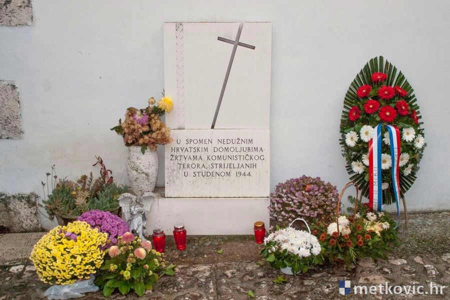 20.11.2016. - Izaslanstvo Grada Metkovića, na čelu s gradonačelnicom Katarinom Ujdur i njezinim zamjenikom te saborskim zastupnikom Nikolom Grmojom, jutros je na Gradskome groblju svetoga Ivana Nepomuka položilo vijenac i zapalilo svijeće pred spomen-pločom na naše sugrađane koji su u studenome 1944. strijeljani na tome i još nekoliko mjesta po gradu.