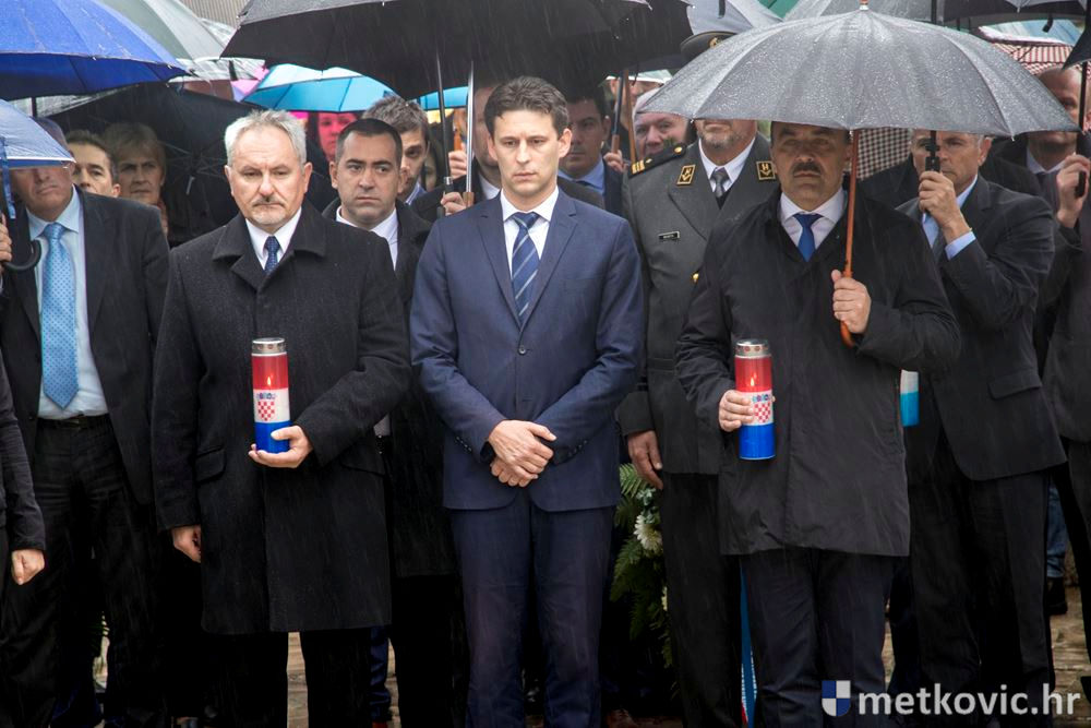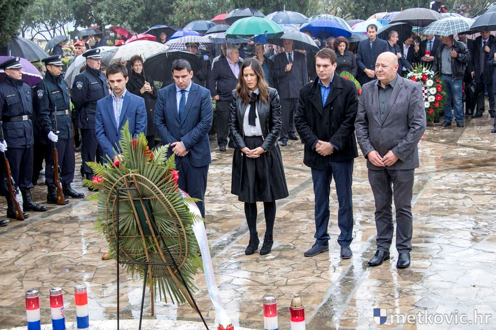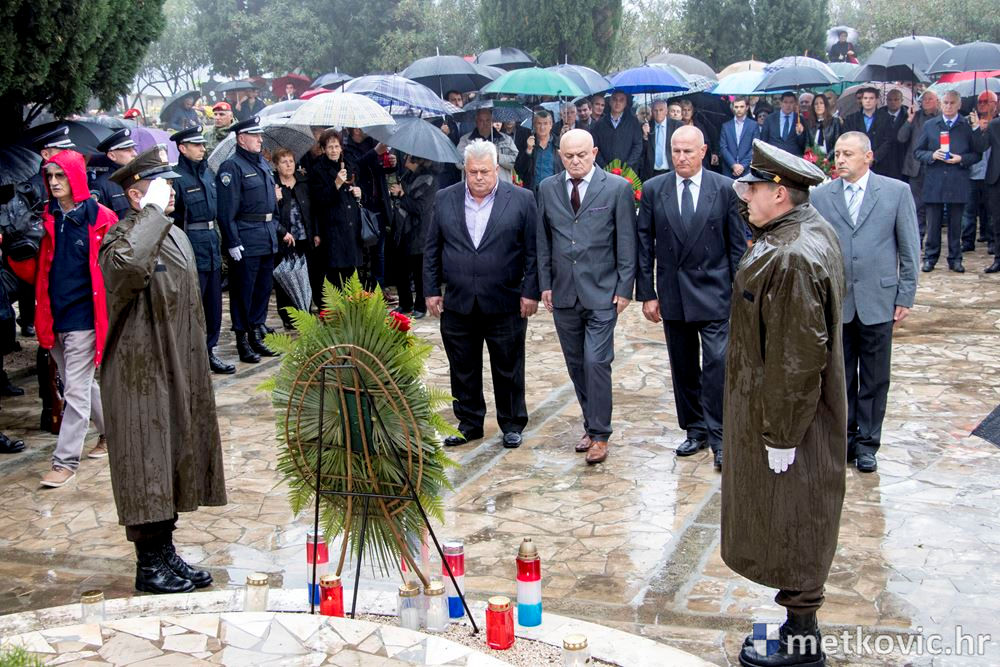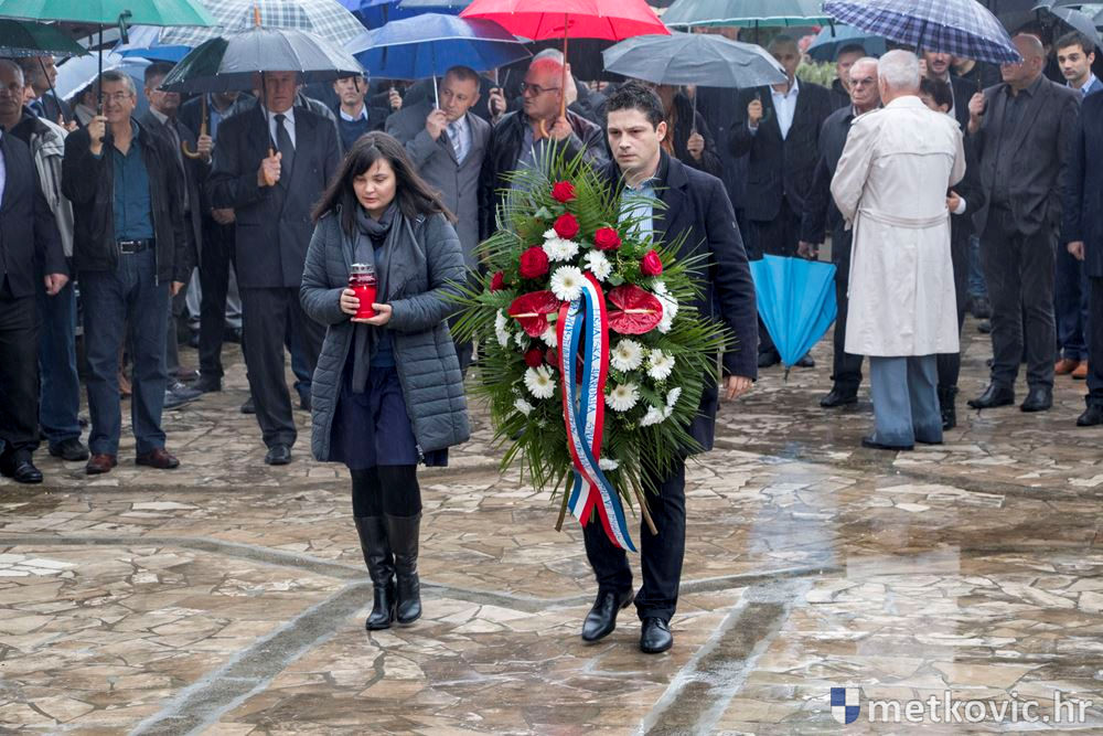 Ceremoniju polaganja vijenaca i zapaljenih svijeća pred Središnjim križem započeli su oni čija je bol najveća i koja nikada neće prestati – predstavnici udruga poginulih hrvatskih branitelja iz Metkovića, Opuzena, Ploča i Općine Slivno. Nakon njih, zajednički su vijenac položili predsjednik Sabora Božo Petrov, ministar unutarnjih poslova i izaslanik predsjednika Vlade RH Vlaho Orepić, izaslanik Predsjednice RH Ivan Krupec, a njima su se pridružili ministar pravosuđa Ante Šprlje, izaslanik potpredsjednika Vlade i ministra obrane te načelnika Glavnoga stožera Oružanih snaga RH brigadni general Ivan Beneta i Ivan Vukić, državni tajnik, izaslanik ministra hrvatskih branitelja. Slijedilo je izaslanstvo 116. brigade HV-a, koje su činili Nedjeljko Obradović, Josip Dragović, Dane Rendulić i Mijo Vukušić. Vijence i svijeće položili su još župan Nikola Dobroslavić, gradonačelnici i načelnici neretvanskih općina i gradova, predstavnici Općine Stolac i tamošnje braniteljske udruge te predstavnici metkovskih ogranaka političkih stranaka Mosta nezavisnih lista, HDZ-a, SDP-a, HSU-a i HNS-a.