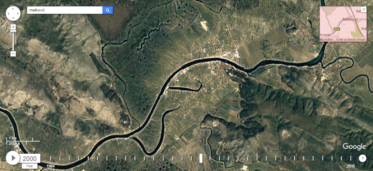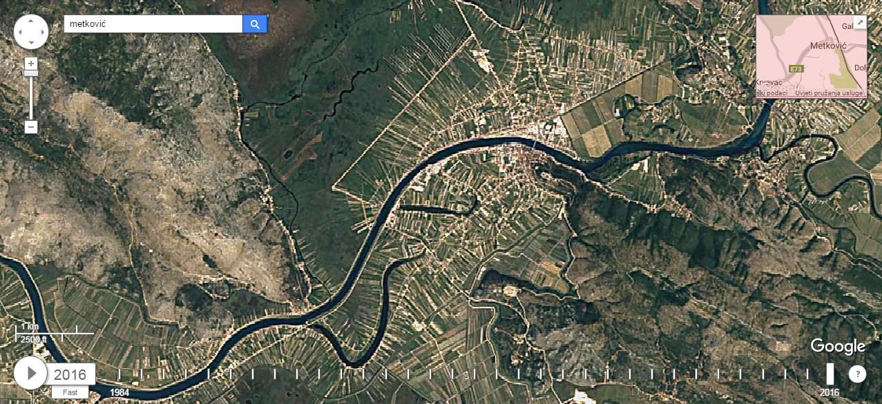 Premda se ne može zumirati kao kod „normalnoga“ Google Eartha, jer bi tada umjesto pet milijuna trebala valjda pet milijardi fotografija, ipak se može vidjeti što se sve događalo na terenu, ali i kako je napredovala tehnologija, tj. razlučivost fotografija. Mi smo za tri neretvanska grada izdvojili po tri fotografije u rasponu od 1984. do 2016. Kliknite na prvu da biste je uvećali i strjelicom desno na tipkovnici idite dalje.